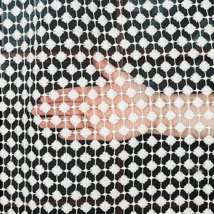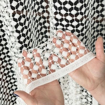 Гипюровая ткань цвета экрю с точечным узором.
