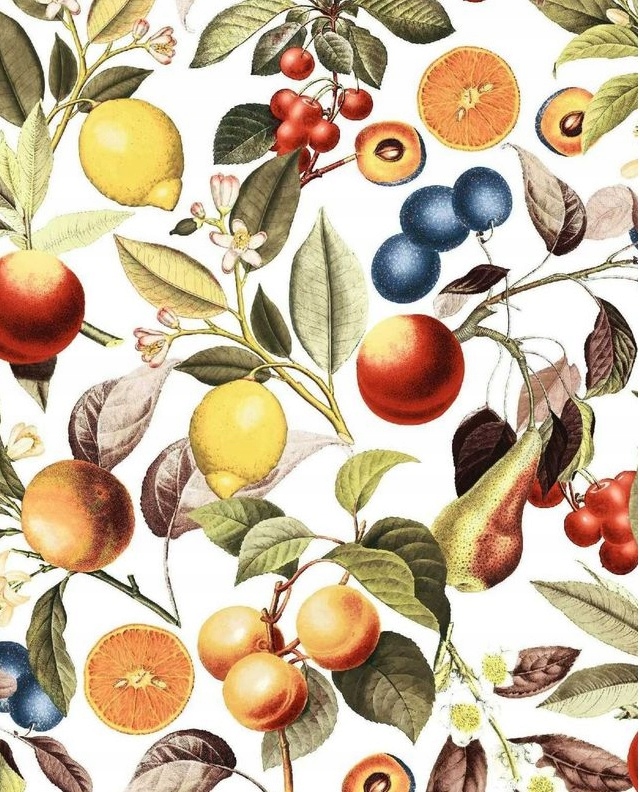 TKANINA PLAMOODPORNA 140 CM OBRUSOWA OWOCE - 1M