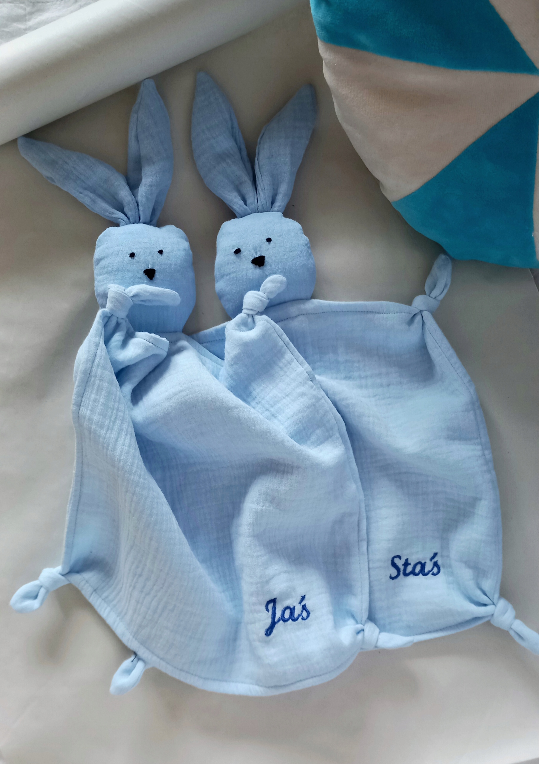 лицо кролика вышит вручную. Подгузник дополнительно прикреплен во всем!