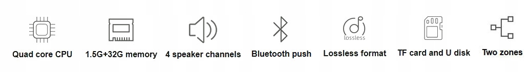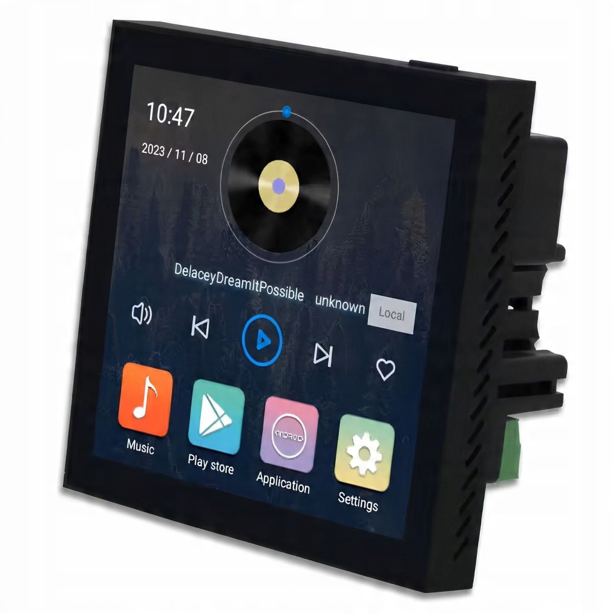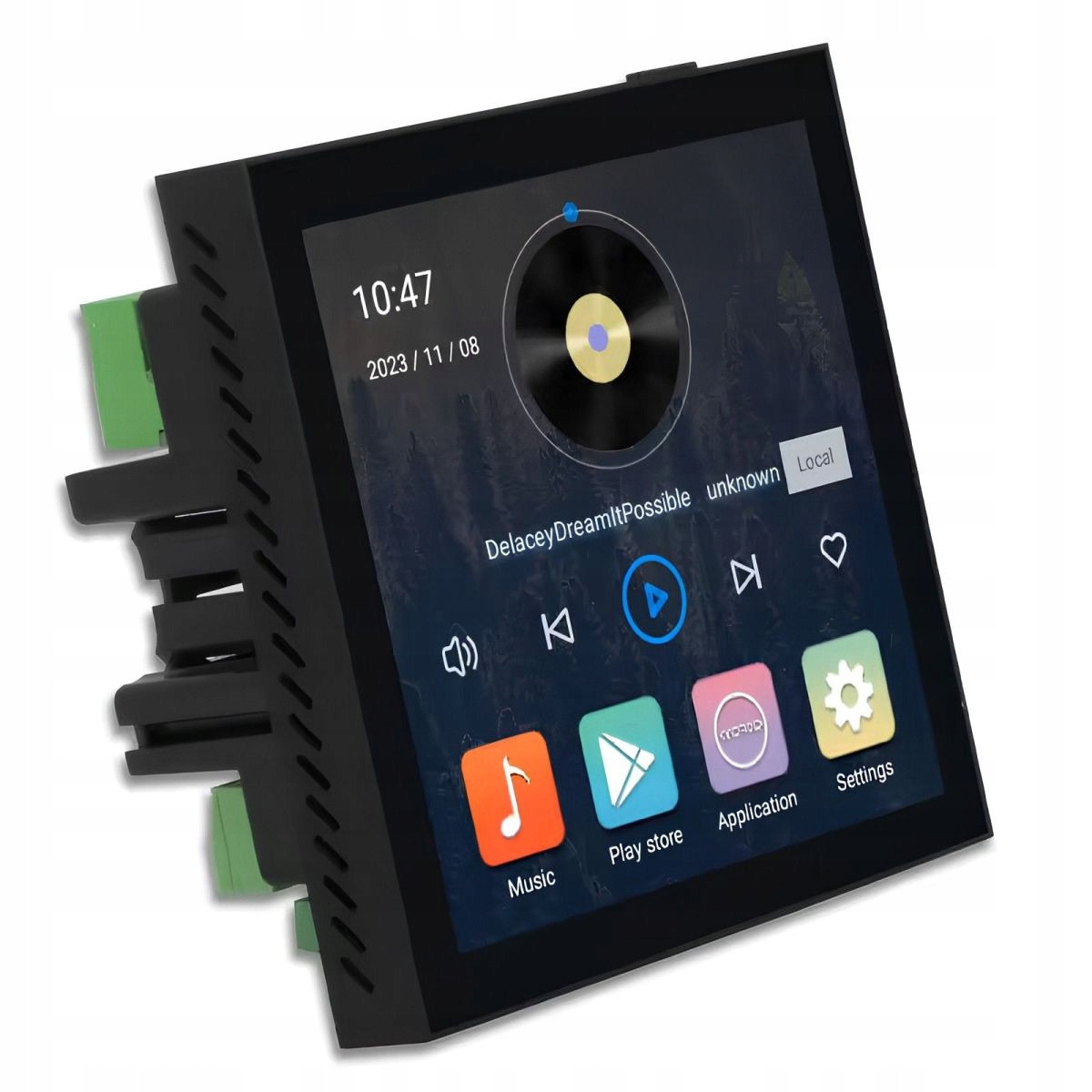 Устройство также позволяет воспроизводить звук с внешних устройств, вставив карту Micro SD (форматы аудиофайлов: MP3, WMA, WAV, AAC и FLAC.) или по беспроводной сети с помощью БЛУЕТУТ. Небольшие габариты и элегантный дизайн с глянцевым покрытием и цветным IPS LCD-дисплеем с подсветкой и сенсорным экраном позволяют легко вписать устройство в декор квартир, офисов, отелей, ресторанов и т. д. Очень простая установка устройства – достаточно подключить блок питания 230 В и динамики. По желанию заказчика система может быть расширена любыми динамиками настенного или скрытого монтажа. Также устройство обеспечивает передачу звука по сети DLNA/AIRPLAY, панель имеет функцию INTERCOM. Кроме того, благодаря доступу к Play Store можно устанавливать такие приложения, как Youtube или Firefox.