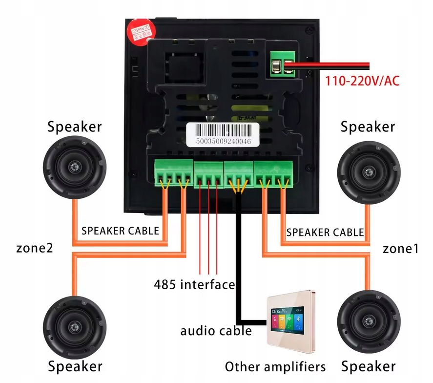 Настенный контроллер с ярким сенсорным дисплеем с подсветкой для скрытого монтажа со встроенным стереоусилителем класса D мощностью 4 х 25 Вт с независимой регулировкой громкости в 2-х зонах (2+2) ). Контроллер имеет проигрыватель интернет-радио (также им можно управлять с помощью приложения TuneIn/Spotify, благодаря которому вы легко сможете создать собственный список любимых радиостанций) и Вход AUX для сигнала дополнительных источников, выход на активный сабвуфер, возможность автоматического воспроизведения расписанию, а также работать в сети без проводов с использованием сети WI-FI или порта Lan.