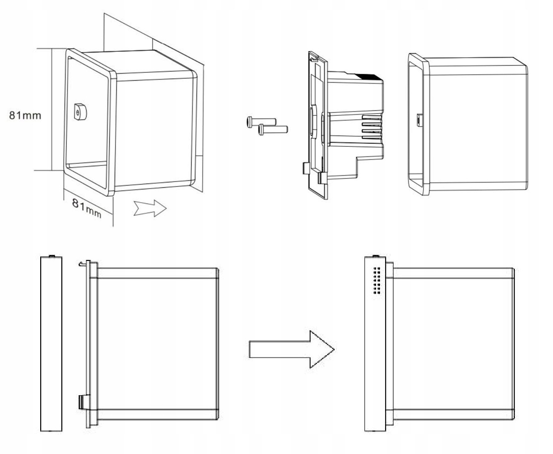 - Внешние размеры панели: 86 × 86(40мм - глубина)мм