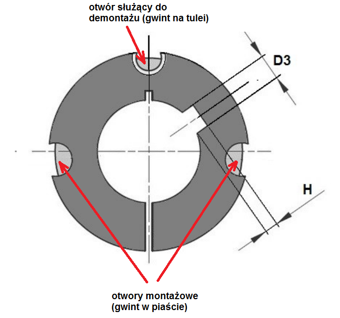 Чтобы установить втулку, вставьте ее в соответствующее гнездо колеса или другой детали, установленной на валу, а затем поместите всю сборку на вал. При вкручивании 2-х винтов в противоположные отверстия втулка будет вдавливаться в гнездо монтируемой детали, зажимая и вал, и ступицу, создавая безлюфтовое, идеально центрированное соединение.