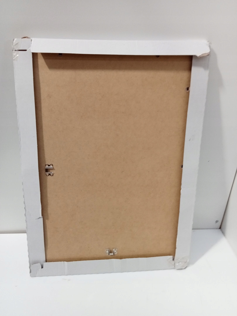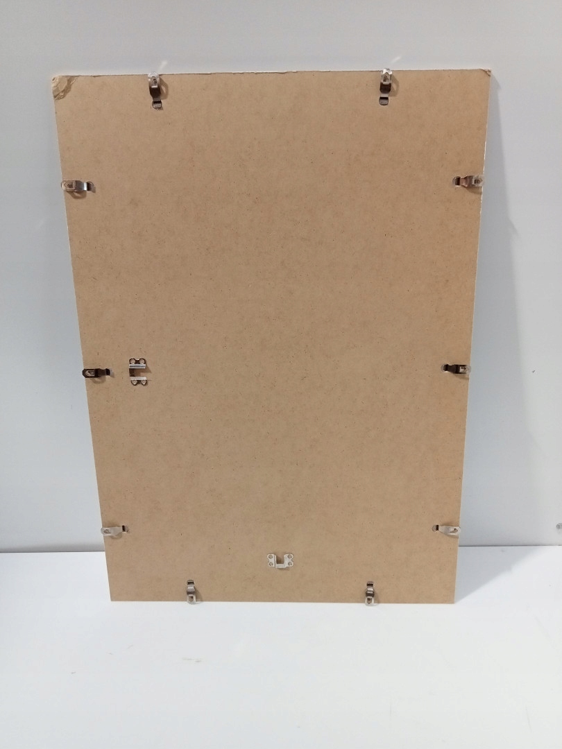 Подходит для бумаги формата A1, A2, A3 и A4. Точные размеры указаны в см, размеры в дюймах являются приблизительными. Фоторамка из МДФ, акрилового стекла и прочных металлических застежек. Легкий монтаж на стену. Один угол поврежден, это видно на фотографиях.