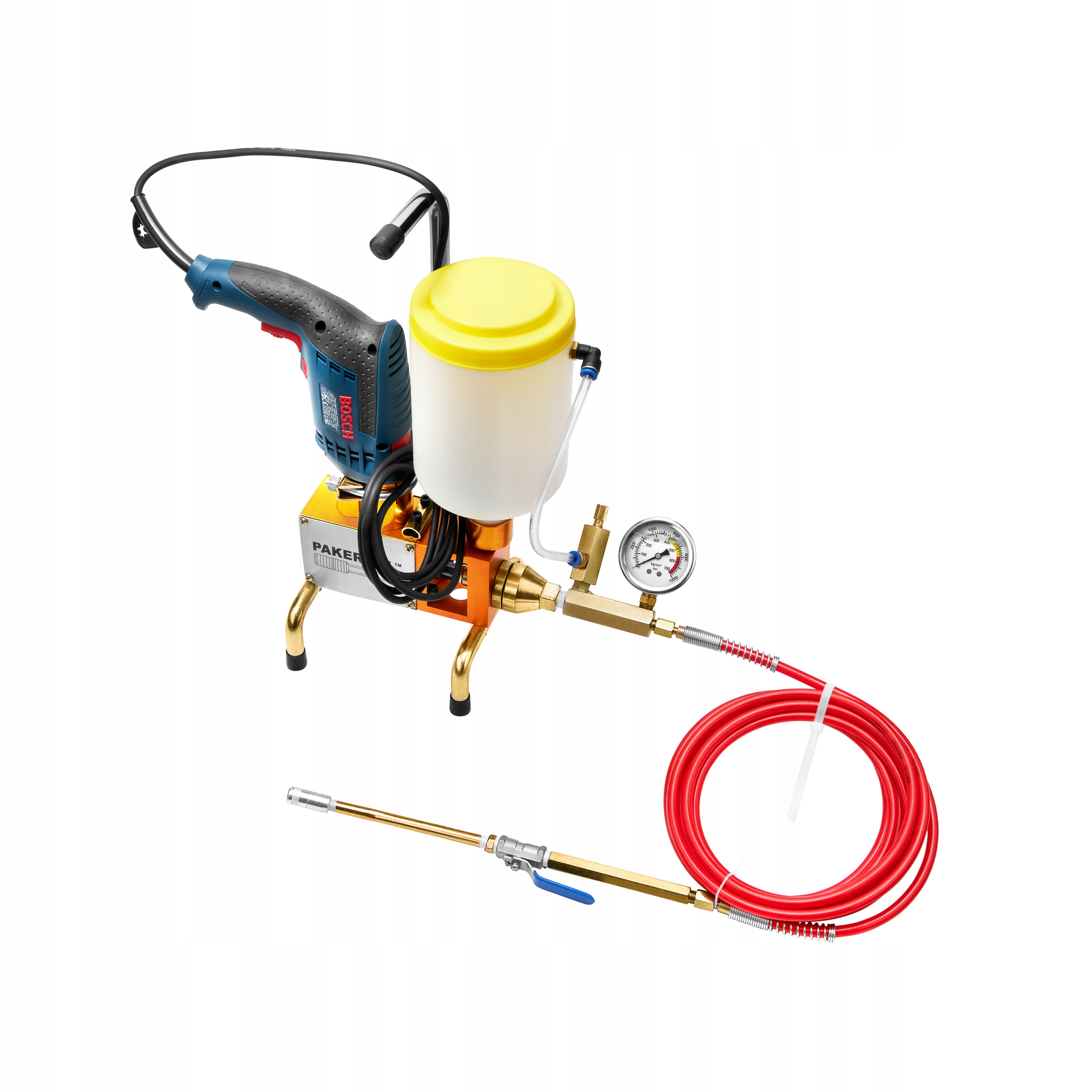 - Вы можете открыть клапан и, кратковременно нажав на переключатель дрели, ввести инъекцию до выбранного давления с выбранной скоростью потока (когда давление составляет, например, 60 бар). , это на всей линии от манометра до конечной точки распространения в трещине), немного увеличивая давление, повторное нажатие на спусковой крючок увеличивает давление во всей нагнетаемой конструкции. Клапан регулирования давления на насосе затем используется для установки максимального давления в конструкции.