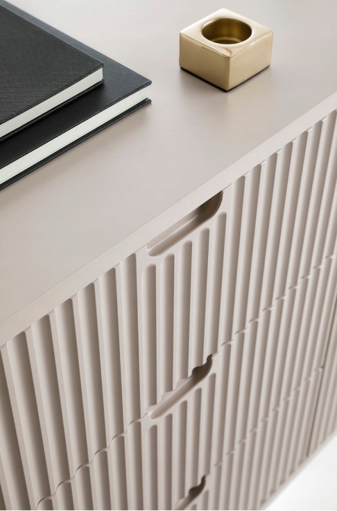 - Оригинальное использование фасадов с бороздками в качестве декоративной части мебели.