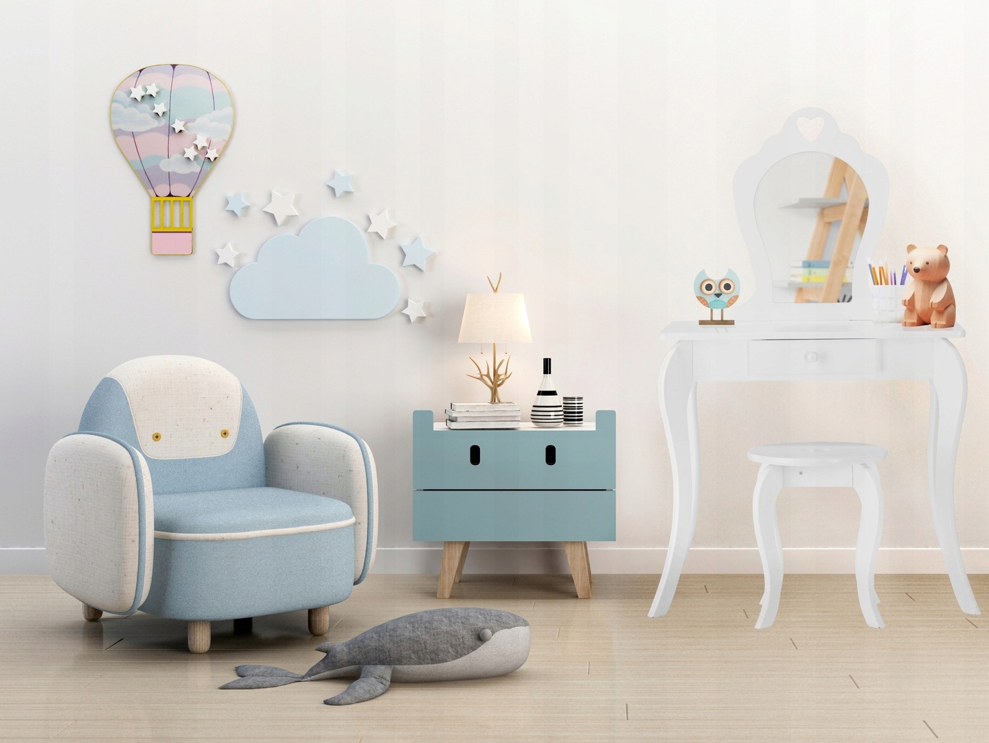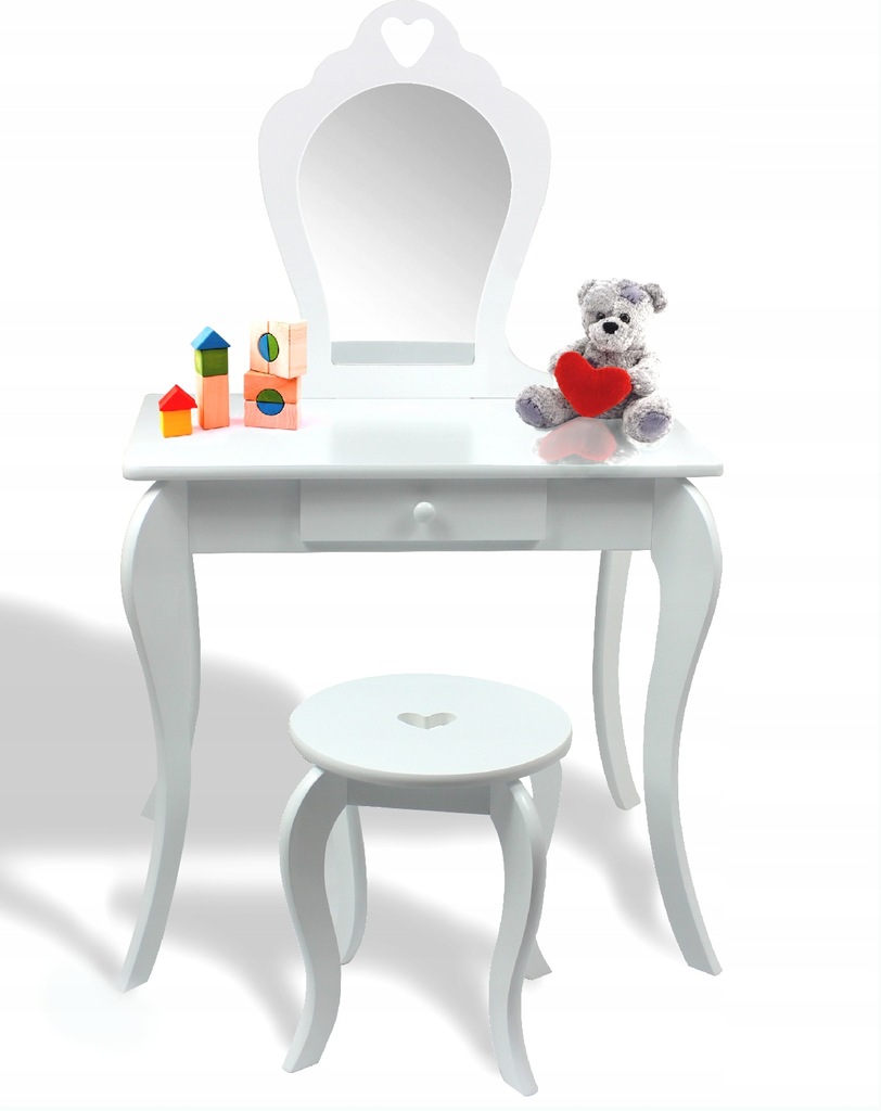 TOALETKA KOSMETYCZNA IDEALNA DLA MAŁEJ DZIEWCZYNKI LUSTRO + TABORET BIAŁA