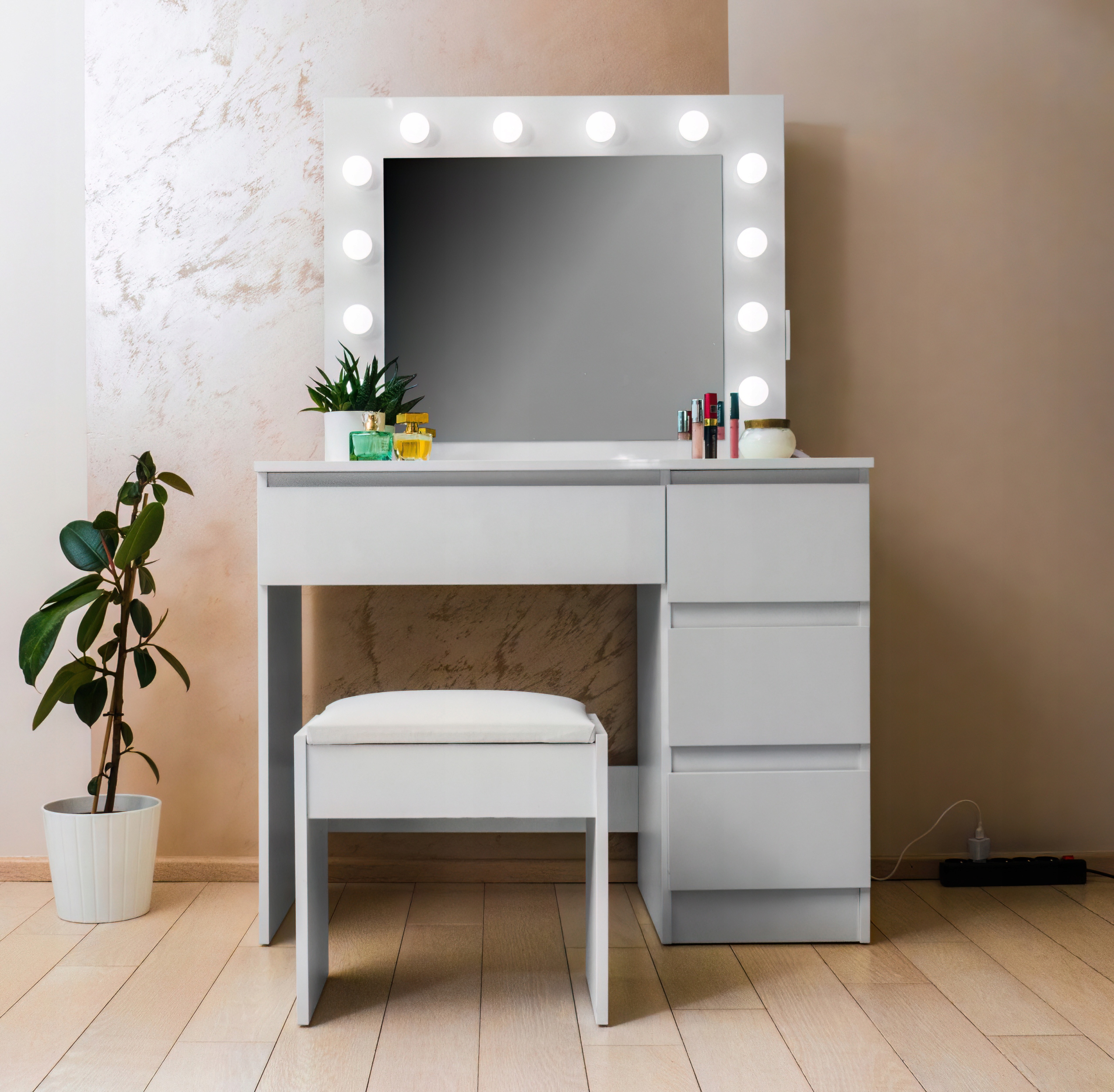 TOALETKA kosmetyczna LUSTRO OŚWIETLENIE 12 LED TABORET USB