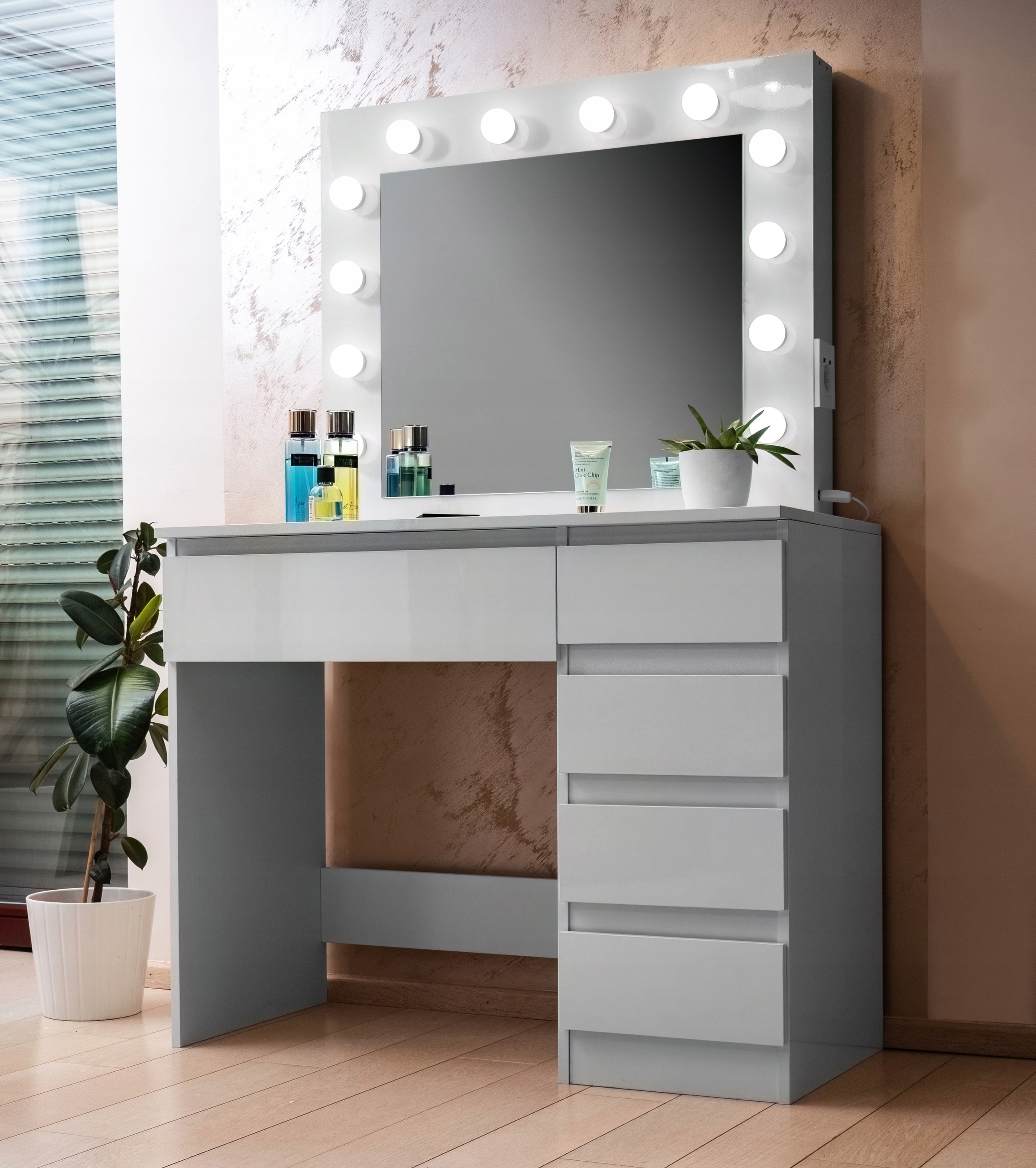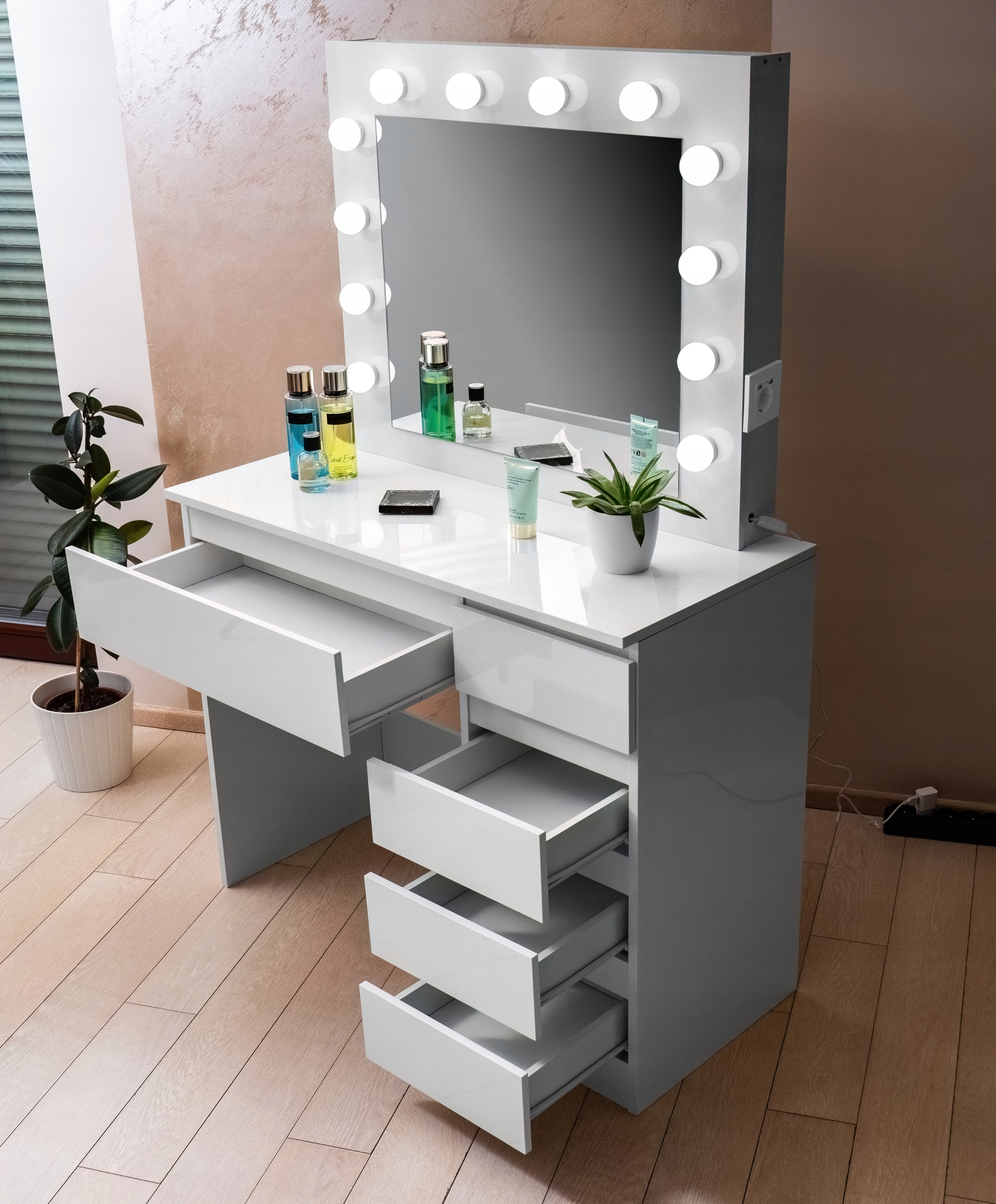 TOALETKA kosmetyczna LUSTRO OŚWIETLENIE 12 LED USB
