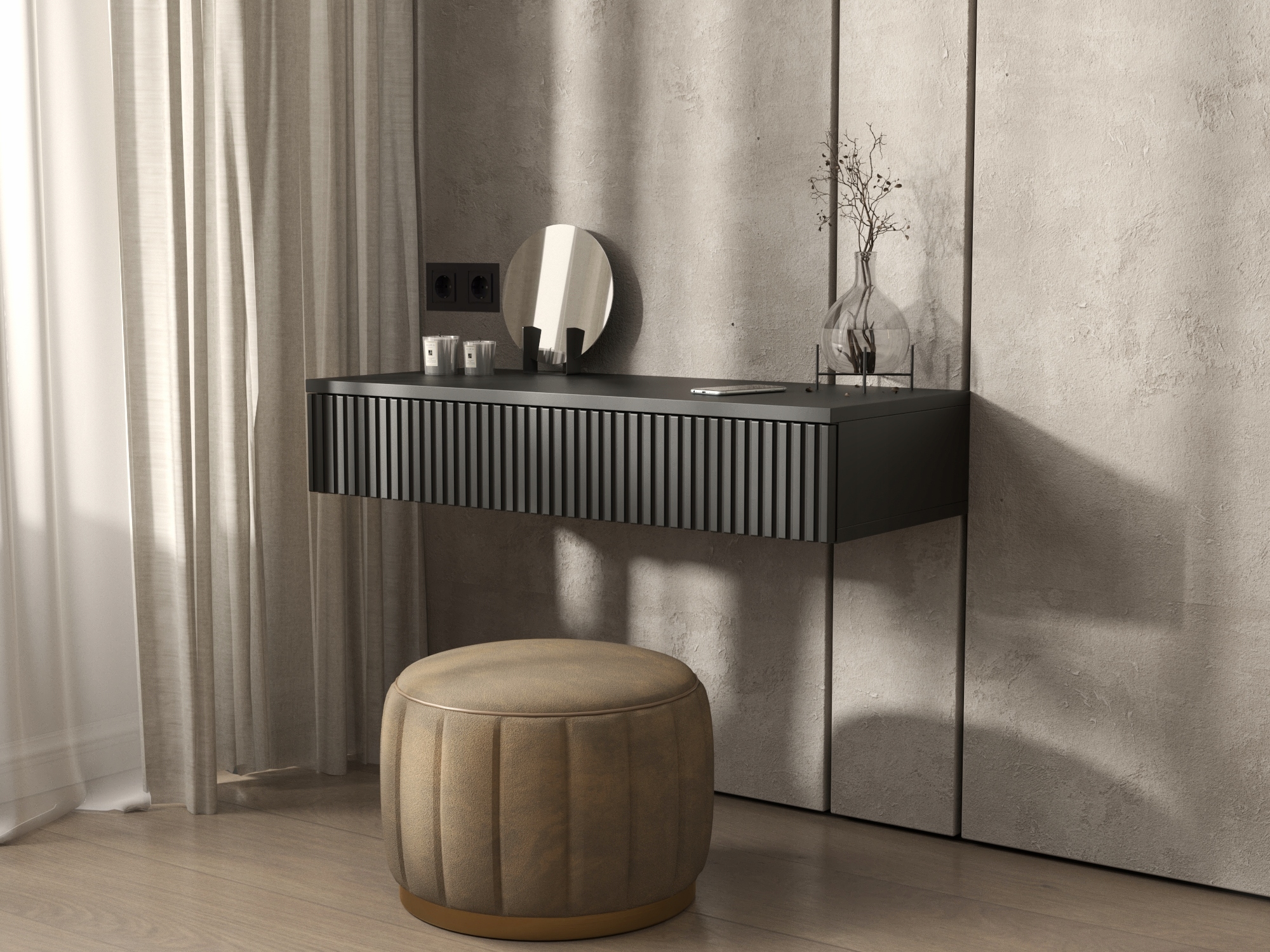 Сочетание минимализма и элегантности. Хотя форма туалетного столика ориентирована на простоту, благодаря рифленой передней части и деталям он выглядит чрезвычайно эффектно