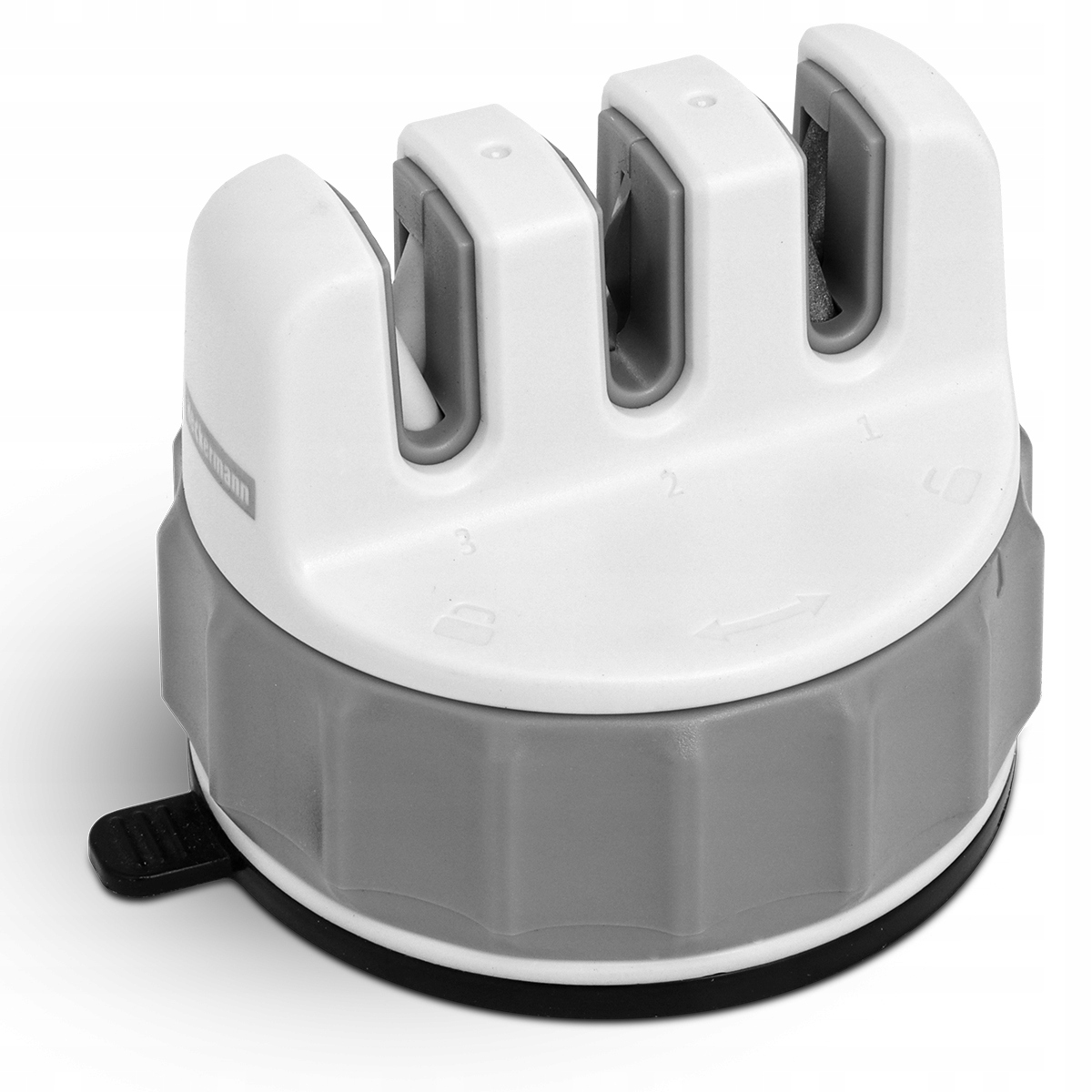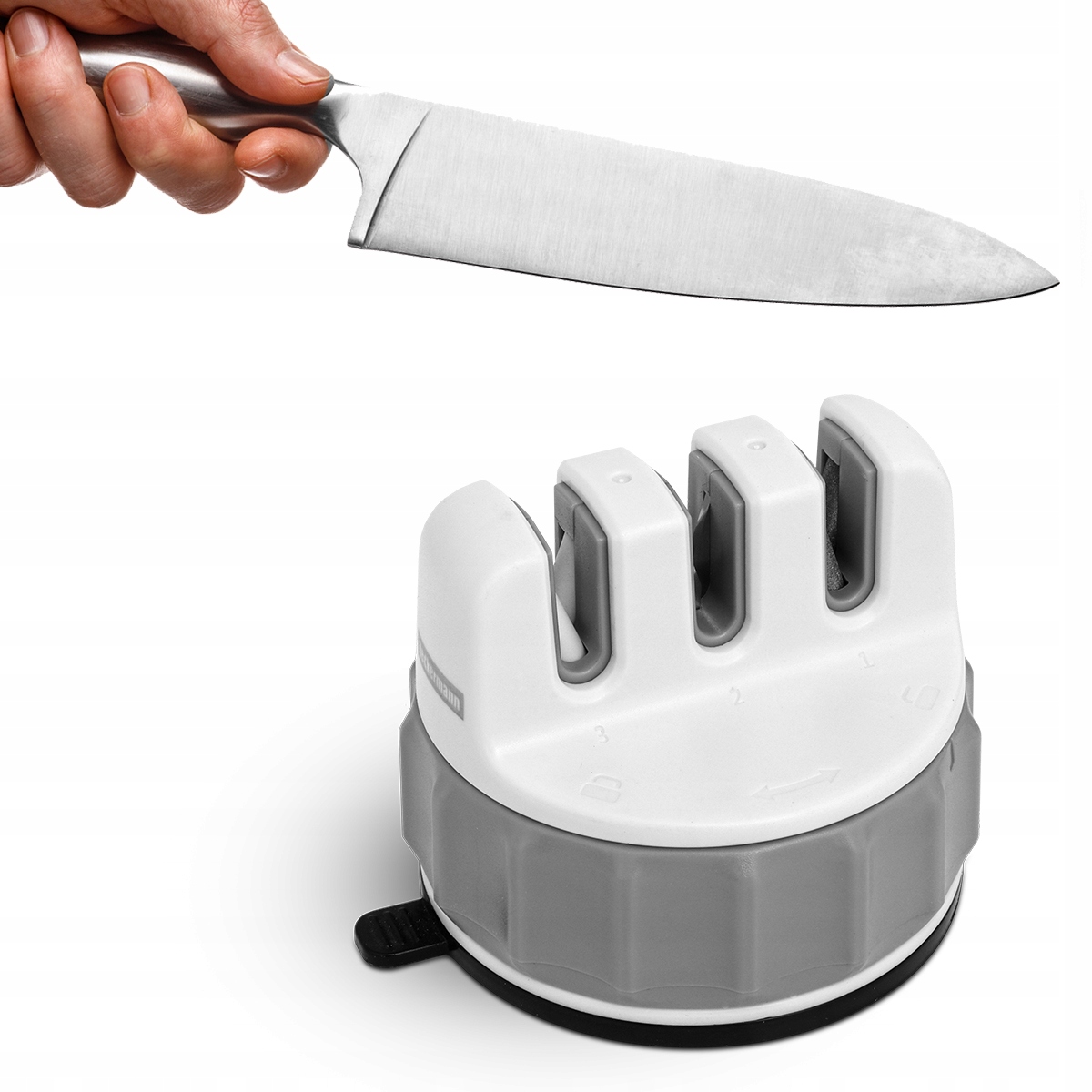 При приготовлении любимых блюд на кухне часто царит хаос. Нам часто не хватает рук для работы, поэтому возможность управлять устройством одной рукой – очень удобное и практичное решение. Он также удобен для людей с ограниченными возможностями. Чтобы использовать изделие таким образом, необходимо прикрепить его к плоской поверхности. Как это сделать? Поместите точилку на гладкую поверхность, нажмите и нажмите на центр скрученной полоски влево, на одной линии с отметкой режущей головки, до щелчка. Как только вы услышите этот звук, точилка установлена правильно. После того, как вы ее правильно прикрепите, вы можете начать использовать точилку одной рукой.