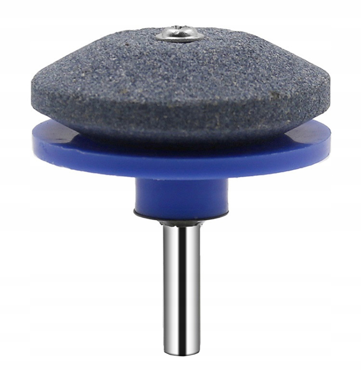 Компактная портативная точилка для газонокосилок и кос. Циферблат изготовлен из прочного пластика и закреплен на стальном штифте диаметром 6 мм. Совместим с большинством дрелей и отверток с разъемом 1/4 дюйма (6,35 мм).