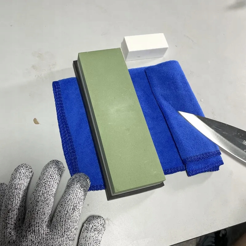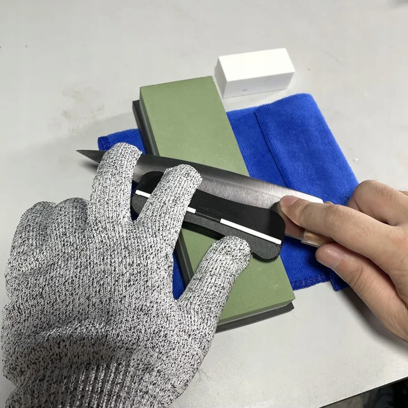 3. Начинайте затачивать нож камнями с более крупной грануляцией, постепенно переходя к более мелким точилкам (400 → 1000; 3000 → 8000). При заточке держите нож под углом 10-20°.