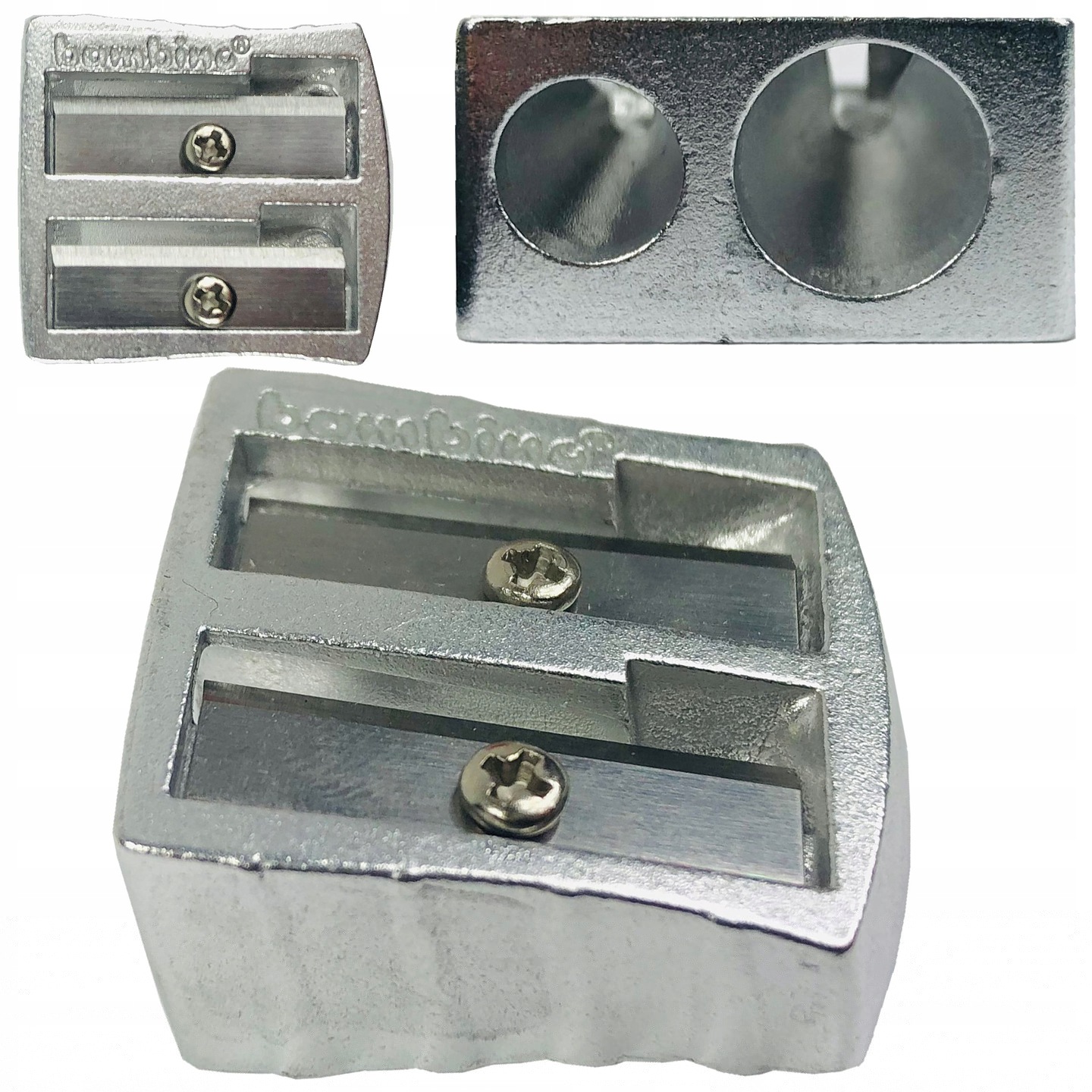 ДВОЙНАЯ ТОЧИЛКА BAMBINO, АЛЮМИНИЕВАЯ, ШКОЛЬНАЯ, 2 ТОЛЩИНЫ ДЛЯ КАРАНДАШЕЙ И МЕЛКОВ