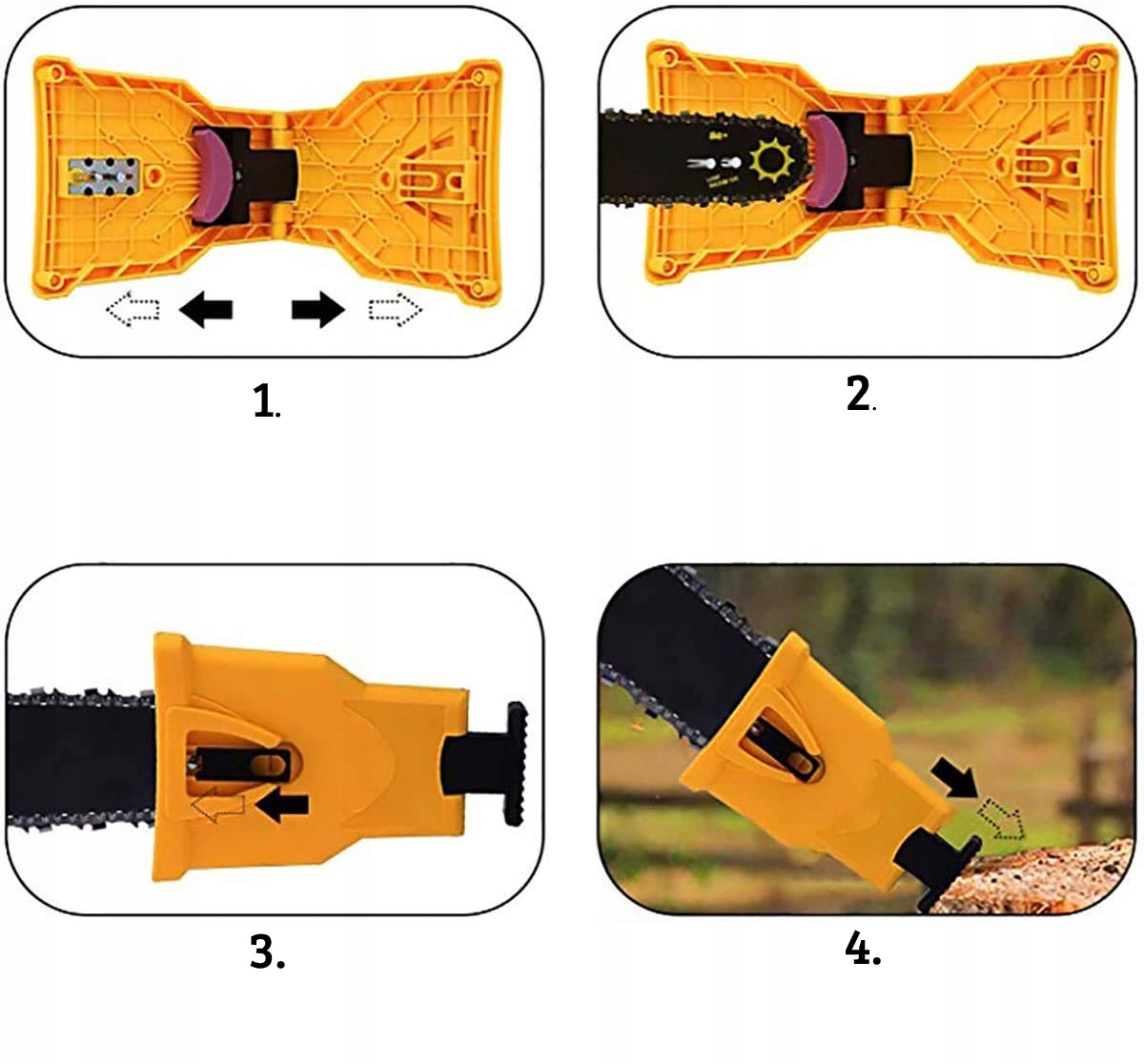 Точилка совместима с большинством бензопил с двумя отверстиями, представленными на рынке: 14/16/18/20 дюймов
