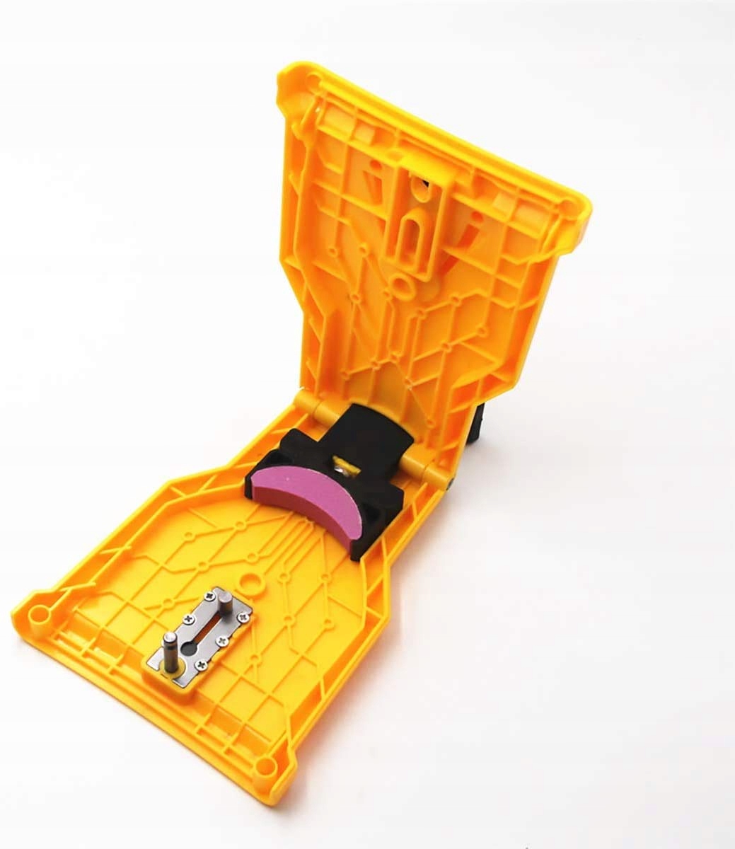 Точилка оснащена двумя монтажными кронштейнами. Один из них фиксированный, другой подвижный (можно снять). Благодаря этому точилку можно адаптировать к различным типам цепей.