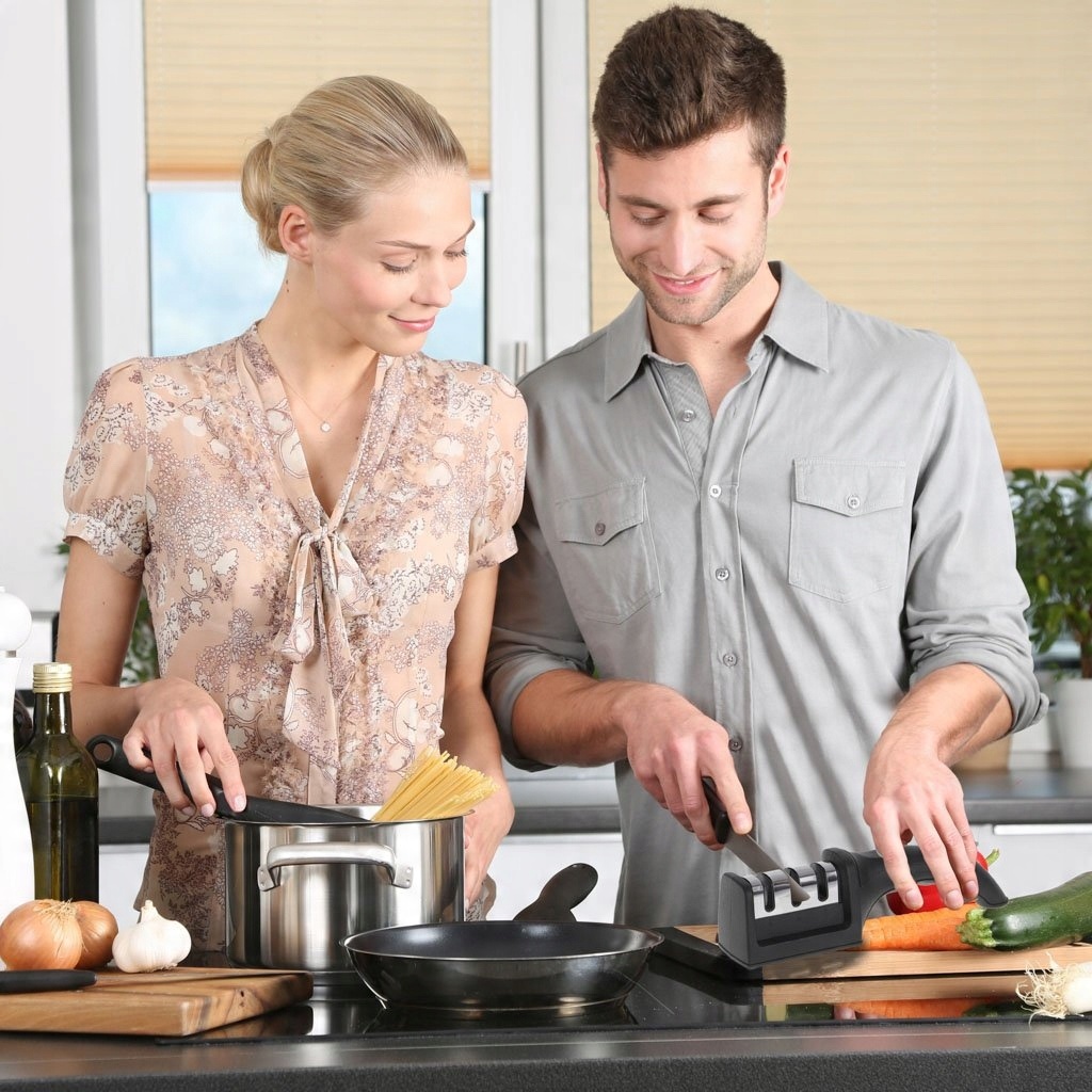 Вам больше не придется беспокоиться о тупых ножах, которые затрудняют повседневное приготовление пищи. Закажите трехфазную точилку и восстановите полную функциональность своих кухонных ножей. Приготовьтесь к удобной и точной нарезке, которая ускорит приготовление еды.