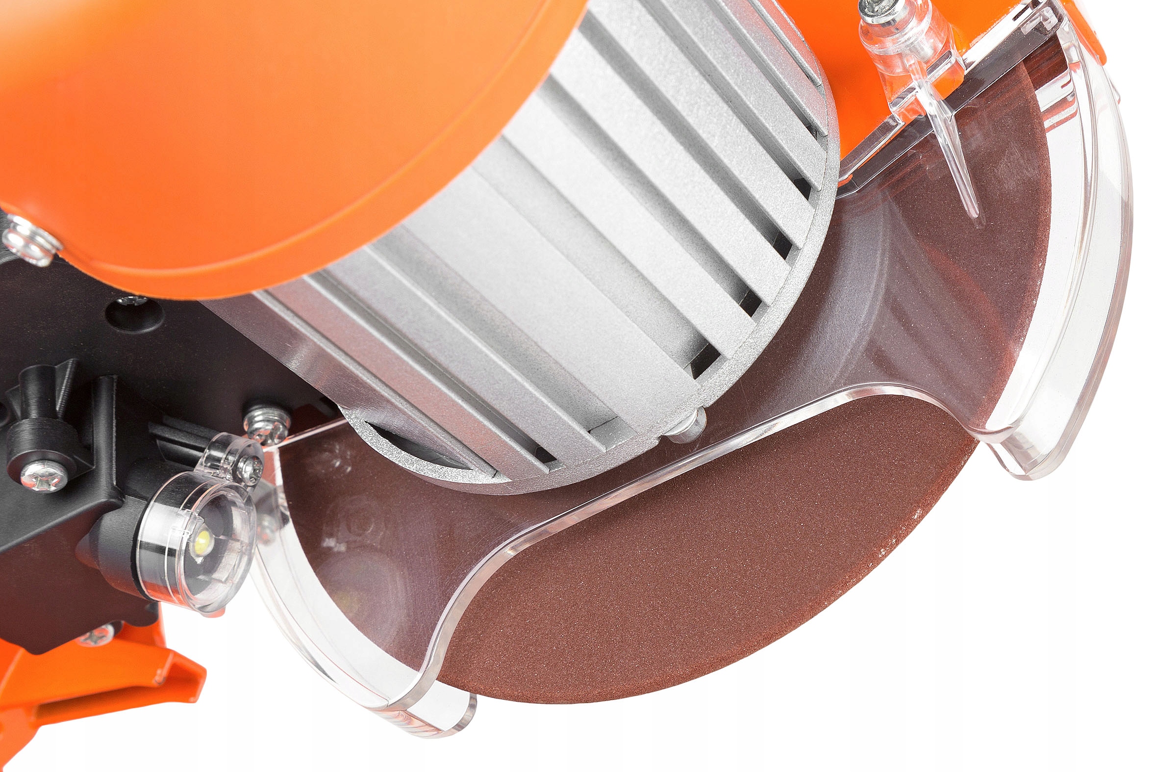 С помощью специального шлифовального диска диаметром 145 мм может использоваться для заточки любого типа цепи, используемой в бензиновые и электрические бензопилы, независимо от мощности и хода производитель цепи или пилы.