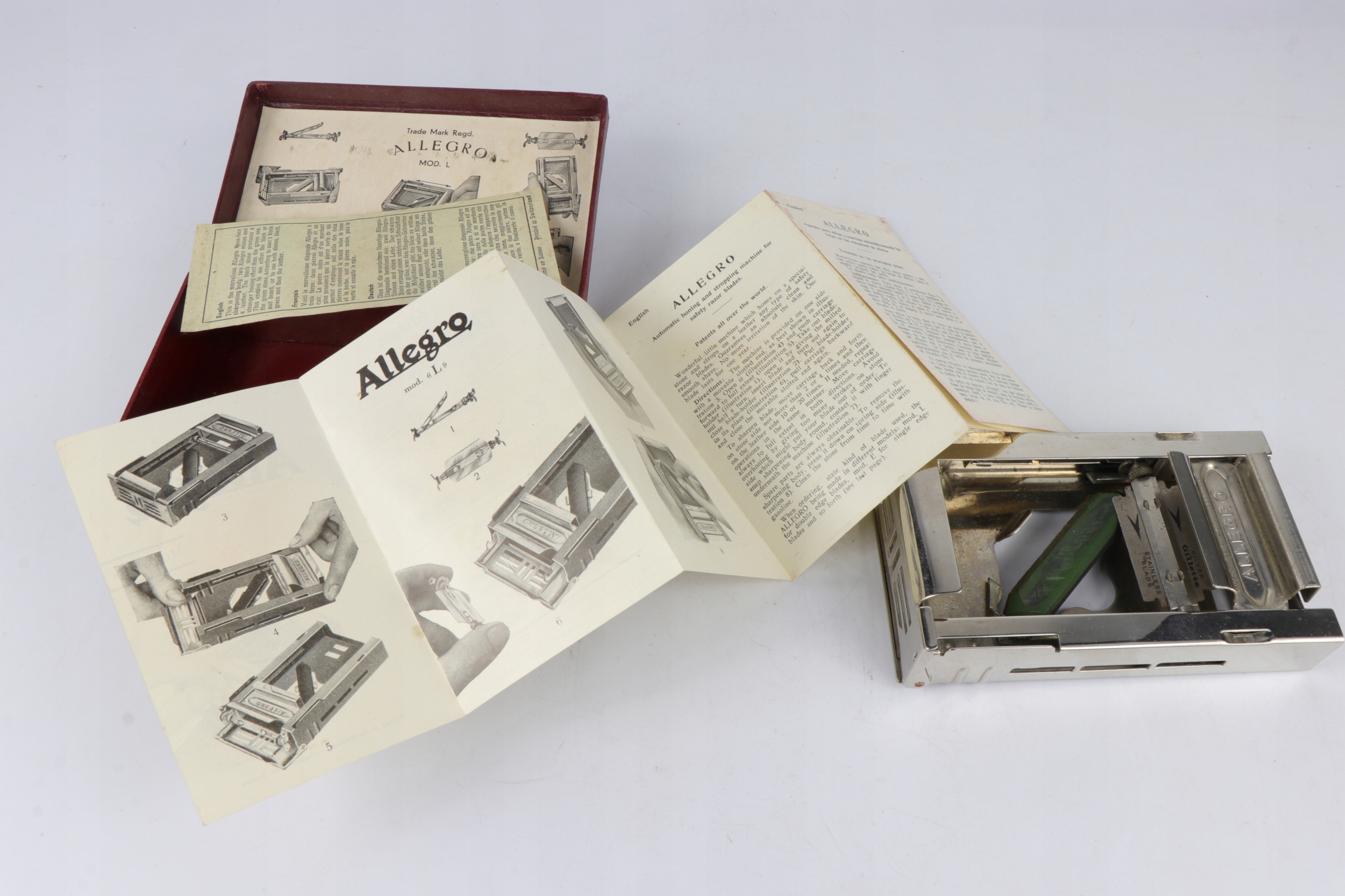 Точилка для бритвенных лезвий Allegro Model L, Швейцария, 1930-е и 1950-е годы.