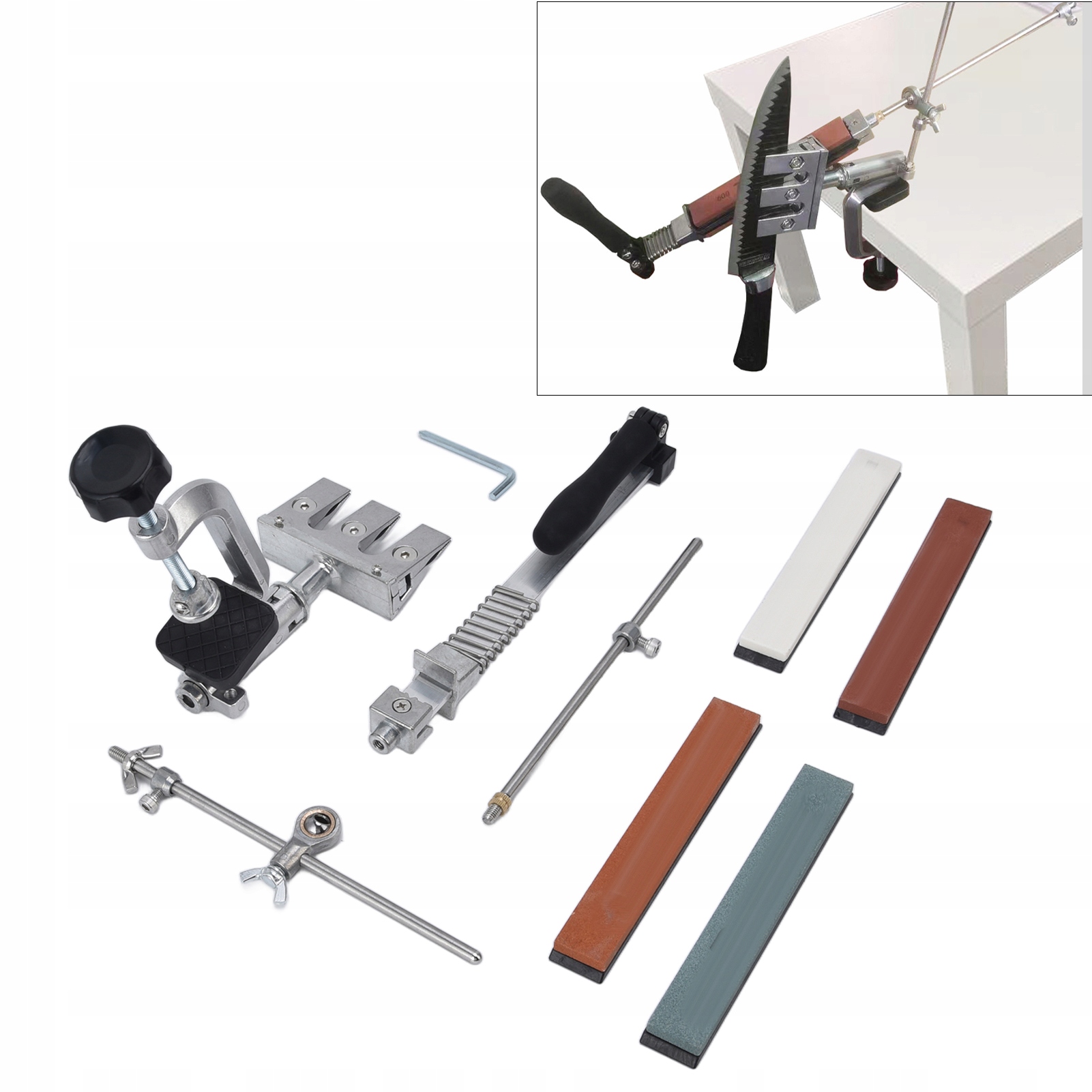 Список упаковки: 4 шлифовальных камня 1 вертикальный стержень 1 подвижный стержень 1 ручка 1 точилка для ножей 1 отвертка 1 сумка для хранения 1 руководство на английском языке