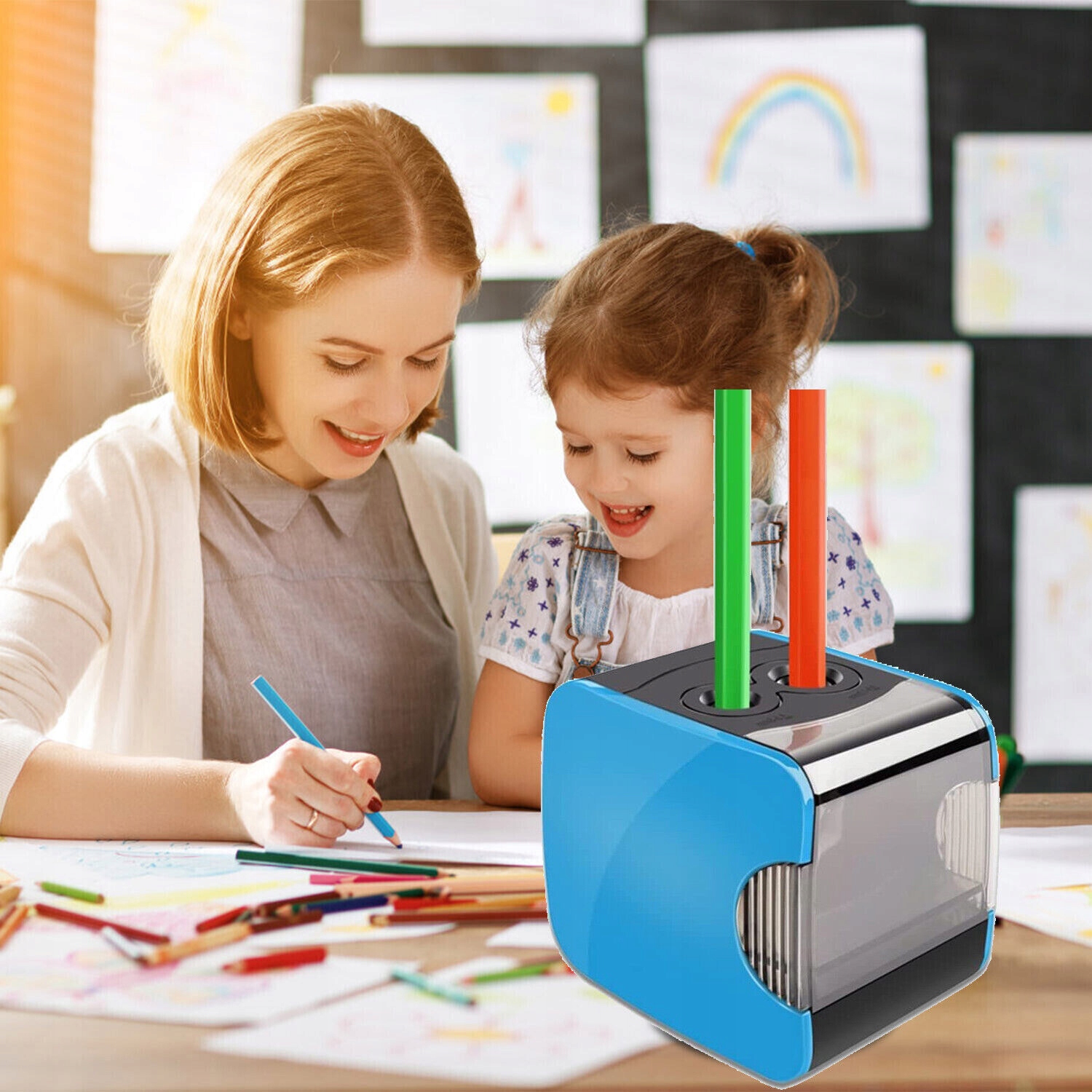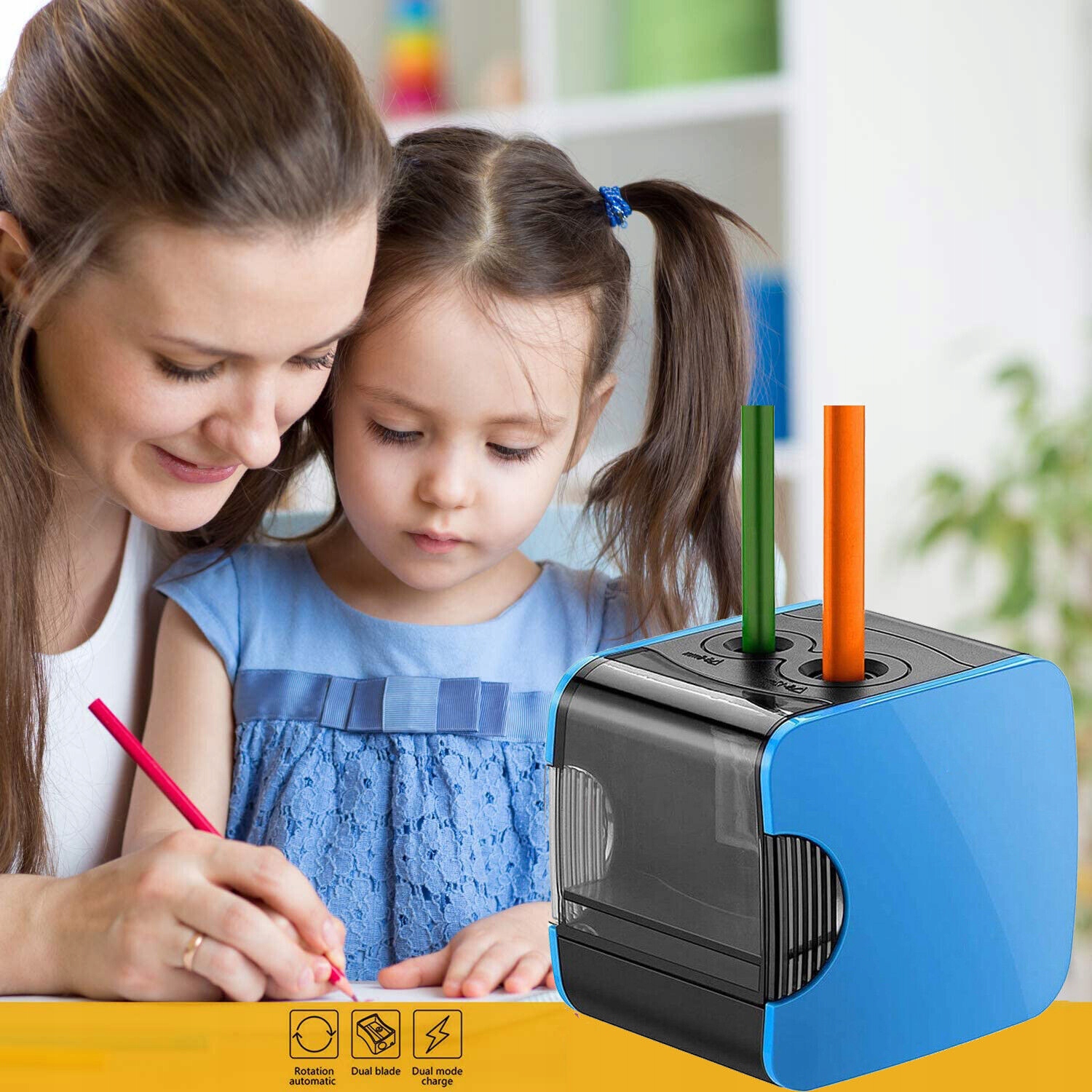 ЭЛЕКТРИЧЕСКАЯ ТОЧИЛКА ДЛЯ КАРАНДАШЕЙ ТОЧИЛКА С ДВУМЯ ОТВЕРСТИЯМИ ДЛЯ ДЕТЕЙ