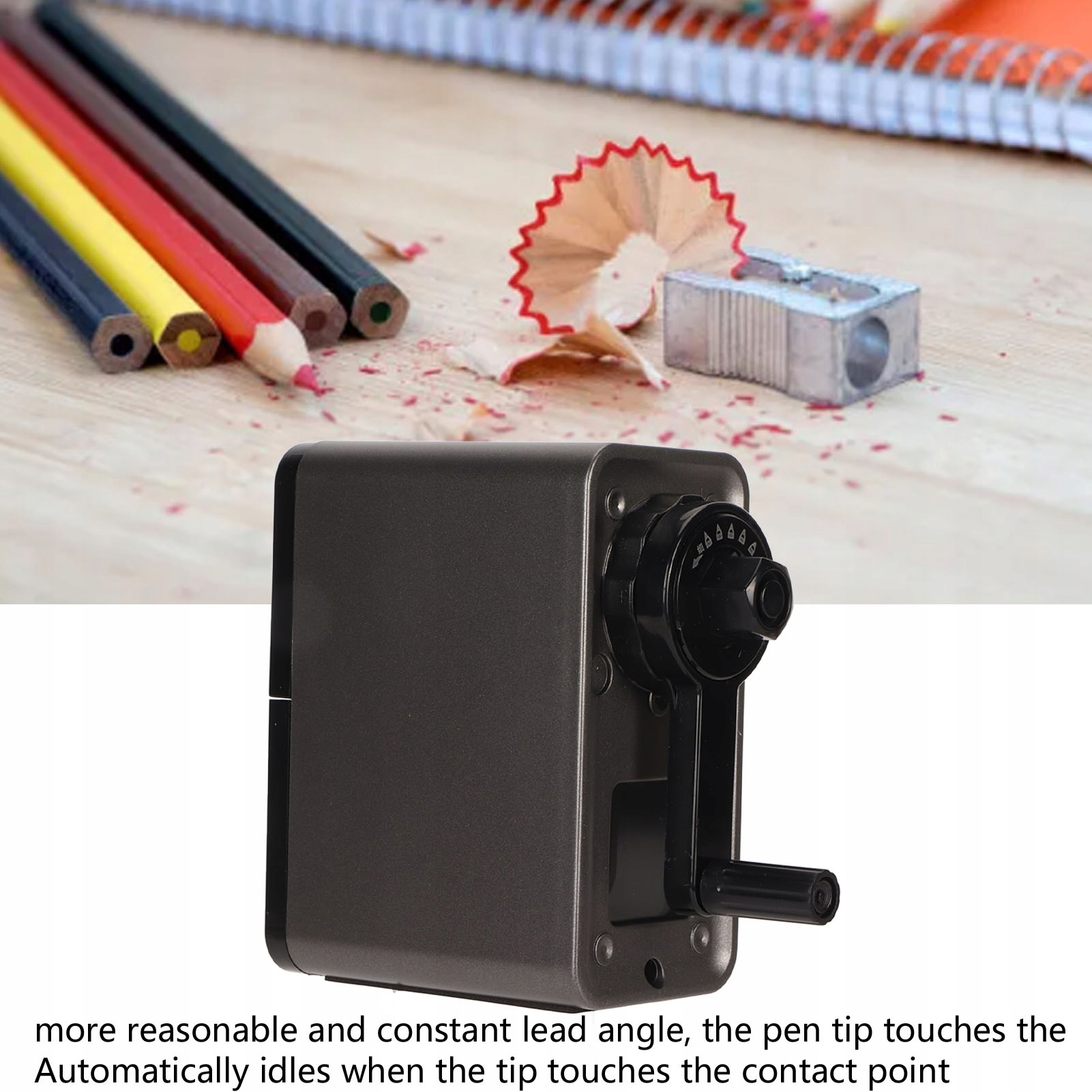 4. Простота в эксплуатации: просто поднесите ручку к зажиму и поверните ее по часовой стрелке, удерживая точилку, ручка начнет двигаться к точилке с каждым поворотом; Когда сопротивление уменьшится, поверните ручку против часовой стрелки, и ручка начнет выходить сама.
