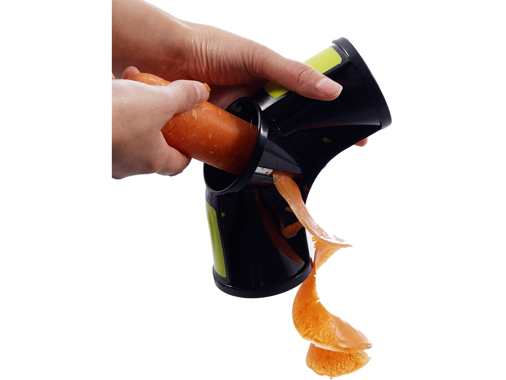 Устройство состоит из трех частей. Просто положите в один из них морковку или другой овощ и скрутите. В результате получатся тонкие ленты или спирали.
