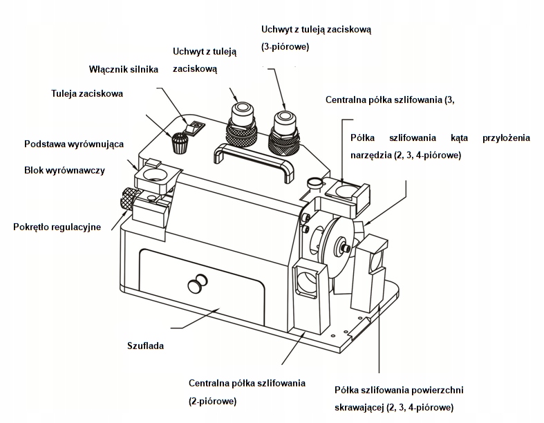- Приспособление предназначено для заточки концевых фрез с 2, 3 или 4 канавками. Также возможно прямо открыть режущую кромку вольфрамовых стержней. Шлифование выполняется быстро и точно, без необходимости иметь опыт работы в этой области. Обеспечивает экономию средств, повышая эффективность работы.