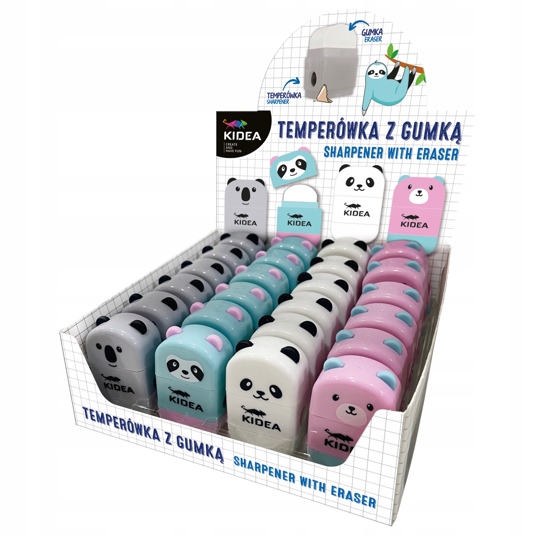 Милая точилка с ластиком в виде милого мишки. На выбор доступно целых 4 узора и пастельных тонов: панда, ленивец, плюшевый мишка и коала. Изделие 2-в-1: состоит из мягкого ластика и точилки с безопасным лезвием и контейнера для лоскутков. Точилкой можно затачивать мелки и карандаши стандартной толщины, а ластик очень хорошо стирает и корректирует рисунки, не повреждая бумагу и не растирая пигмент. Идеально подходит для школы и детского сада, а также для творческих игр дома. Самым главным его преимуществом является удобный размер, который легко помещается в пенал.