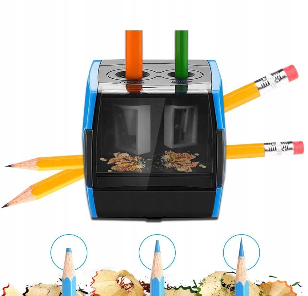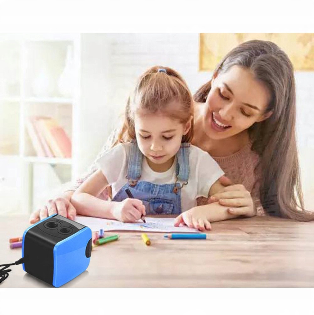 Дизайн с двойными отверстиями: просто вставьте карандаш или цветной карандаш в соответствующие отверстия (6–8 мм и 9–12 мм) b >электрическая точилка