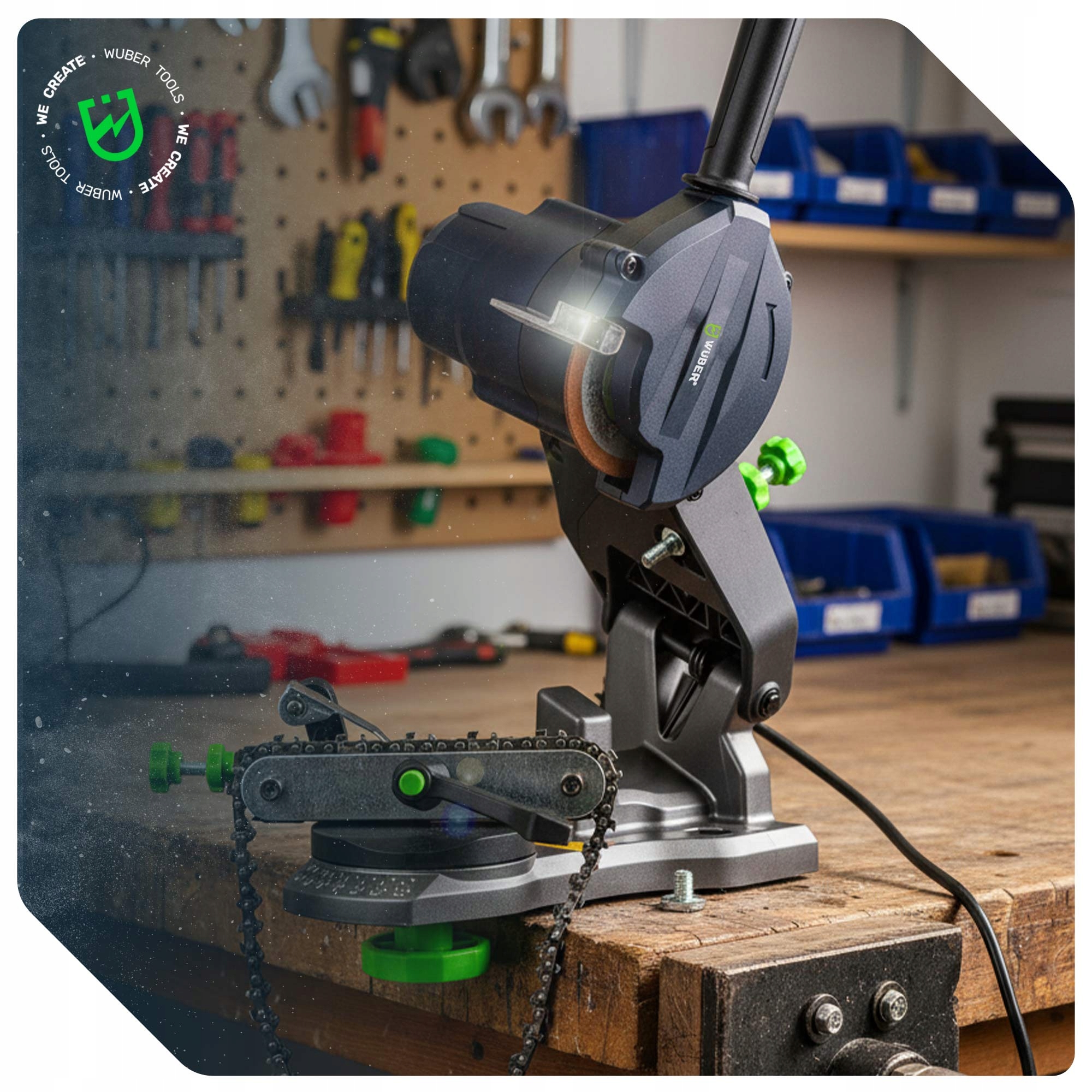 Прибор оснащен мощным двигателем мощностью 85 Вт, который обеспечивает постоянную скорость вращения 5000 об/мин, что гарантирует быструю и равномерную заточку каждого зубца цепи.