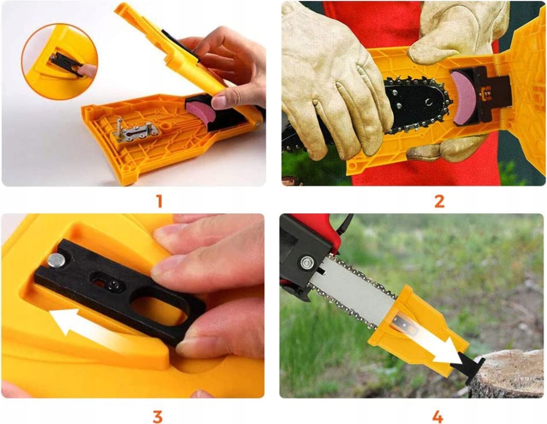Точилка для бензопилы изготовлена из прочного материала ABS. Простая и удобная в использовании конструкция обеспечивает быструю и эффективную заточку цепи.