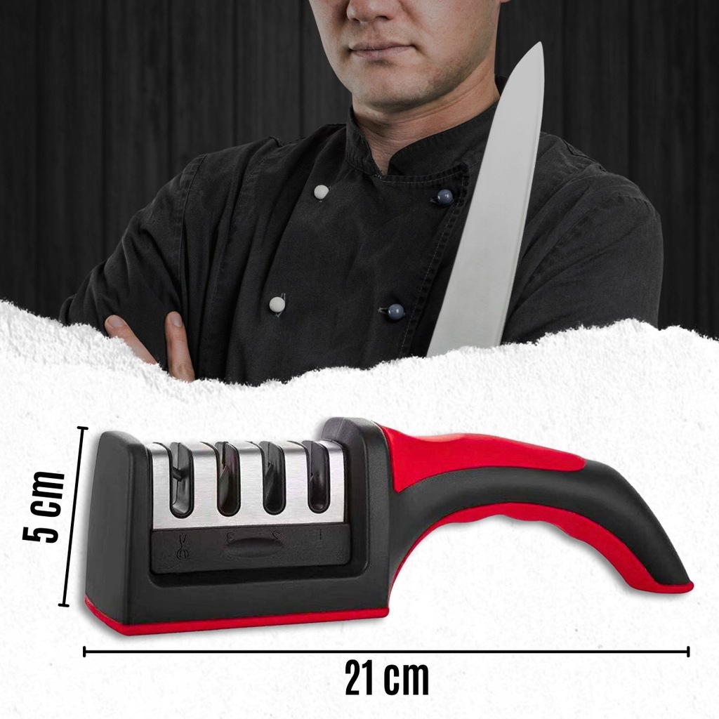 Это Компактная трехфазная точилка 3-в-1 — решение для всех, кто ценит острые, безопасные и долговечные кухонные инструменты. Изготовлен из прочных материалов, имеет три ступени заточки, эргономичную ручку и небольшой размер - идеально подходит для любой кухни.