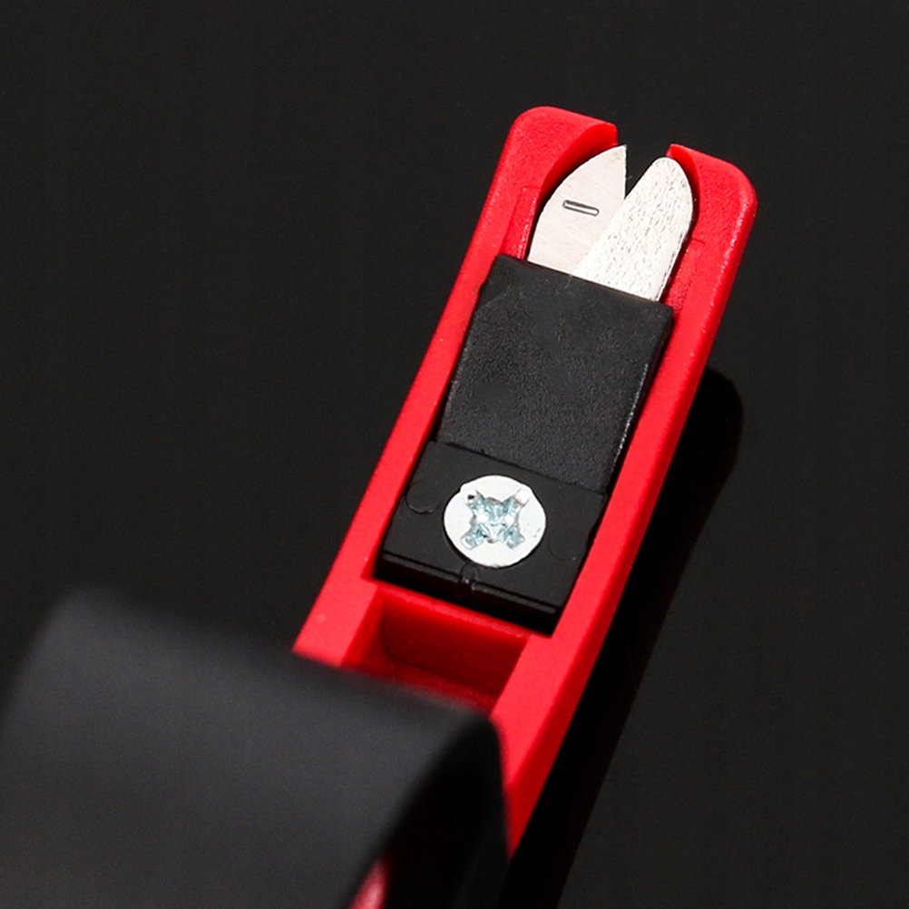 Эта точилка затачивает лезвия газонокосилки, сучкорезы, сучкорезы, мотыги, лопаты, косы и другие режущие инструменты за считанные секунды. Эргономичная ручка изготовлена из высоколегированной стали и обрамлена матовым пластиком. Надежно помещается в любую руку.