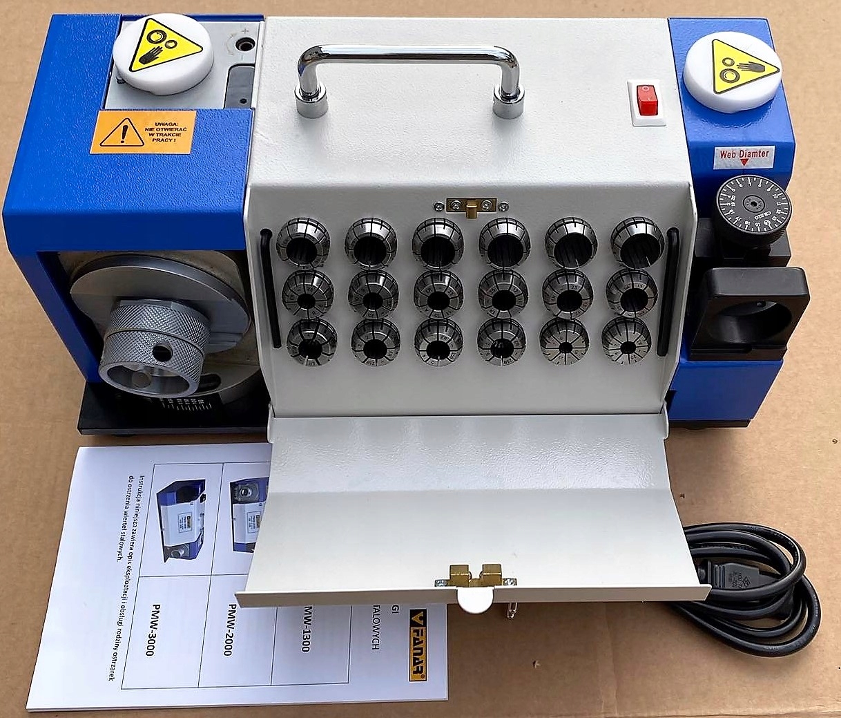 Точилка для заточки сверл Fanar PMW-2000 предназначена для заточки боковых сторон и коррекции режущей кромки сверл HSS и HSSE.