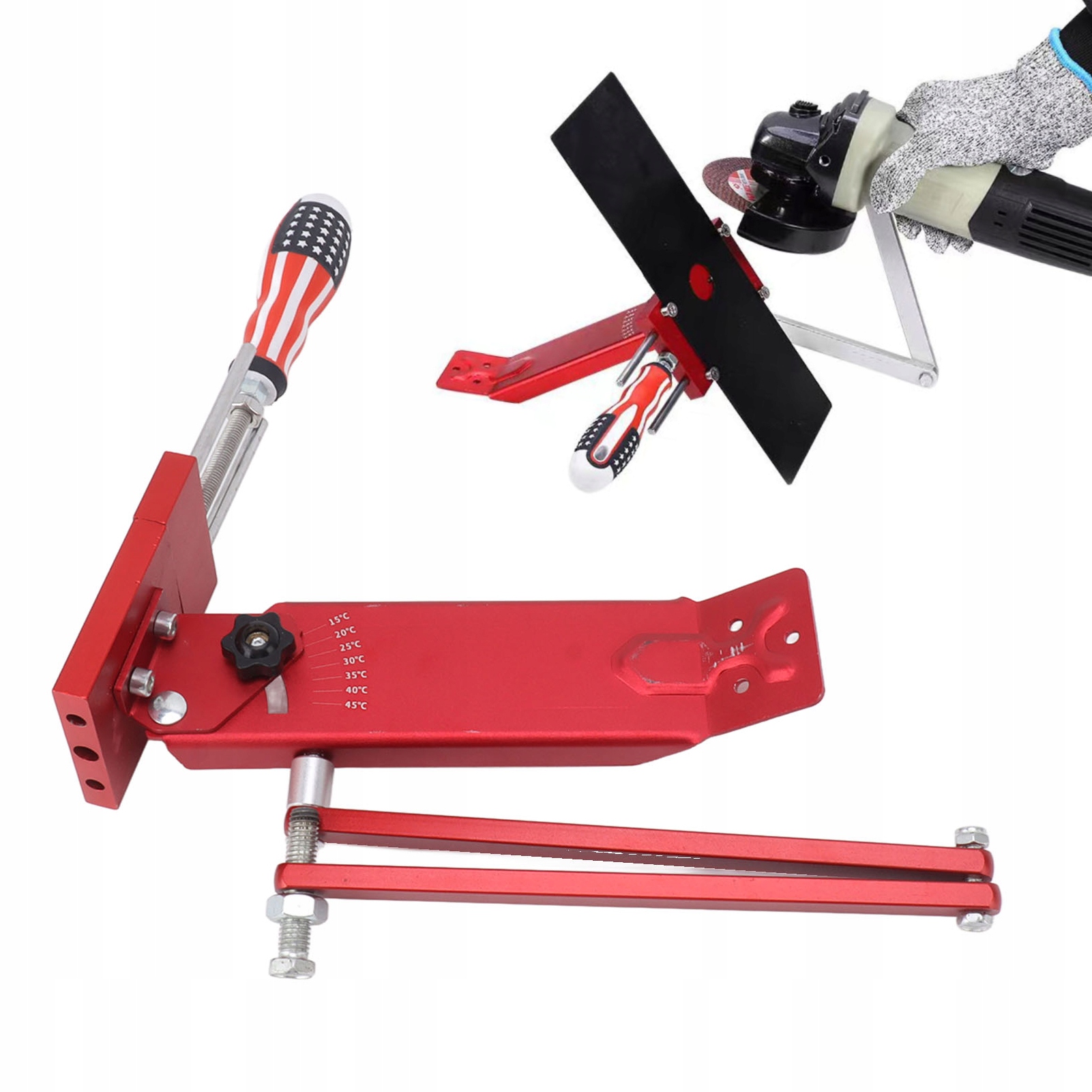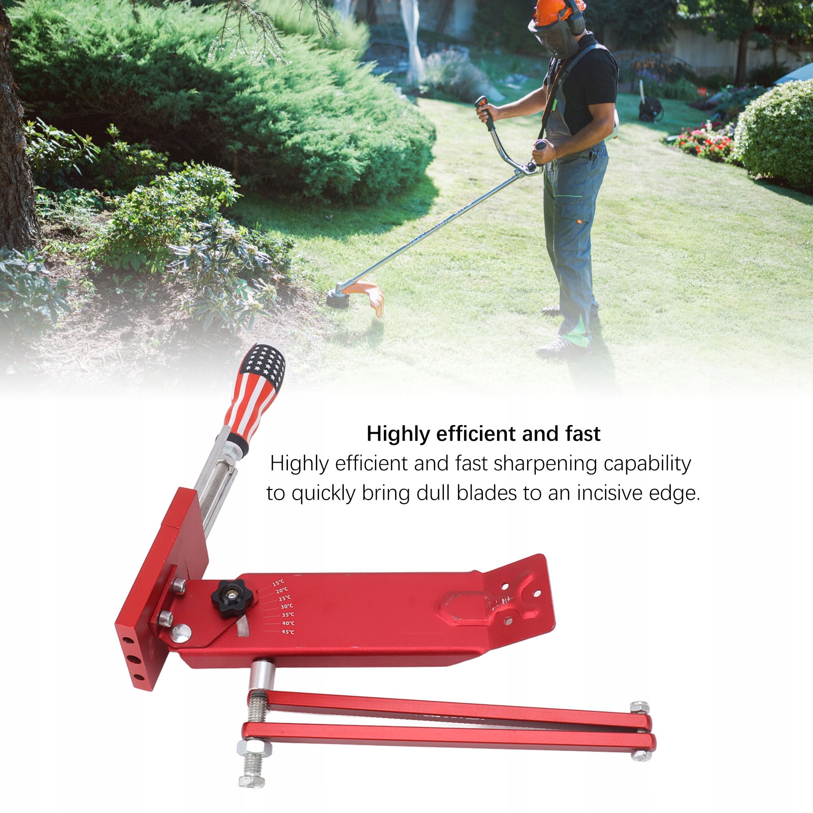 2. Регулируемый угол: этот точилка из косилки может быть легко установлен под углом от 15 до 45 °, что позволяет регулировать растворы заточки на различные типы лопастей косилки.
