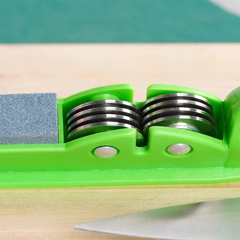 - Практический - точилка имеет металлические измельчительные диски для заточки ножей и каменный лоскут для их полировки. Не подходит для зубчатых и керамических ножей. Подходит для простых кухонных ножей, например, шеф -повар