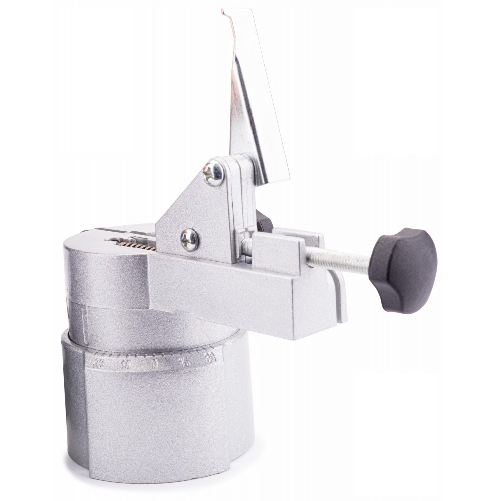 Точилка оснащена наклонными тисками с ограничителем глубины заточки.
