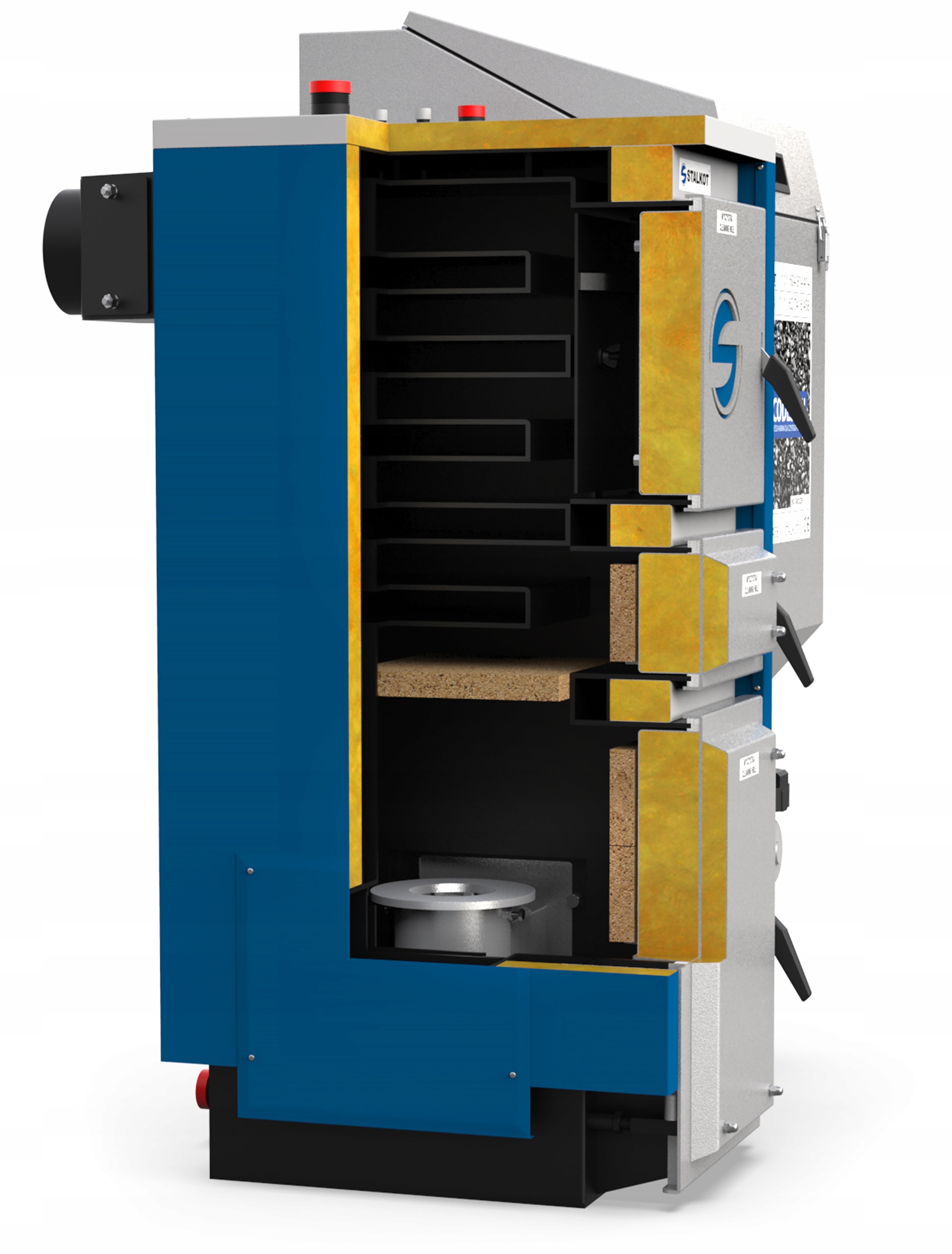 - система аэрации круглой топки (модернизированная передняя воздушная камера) - позволяет эффективно сгорать топливо как при минимальной потребности в тепле, так и при максимальной мощности котла,