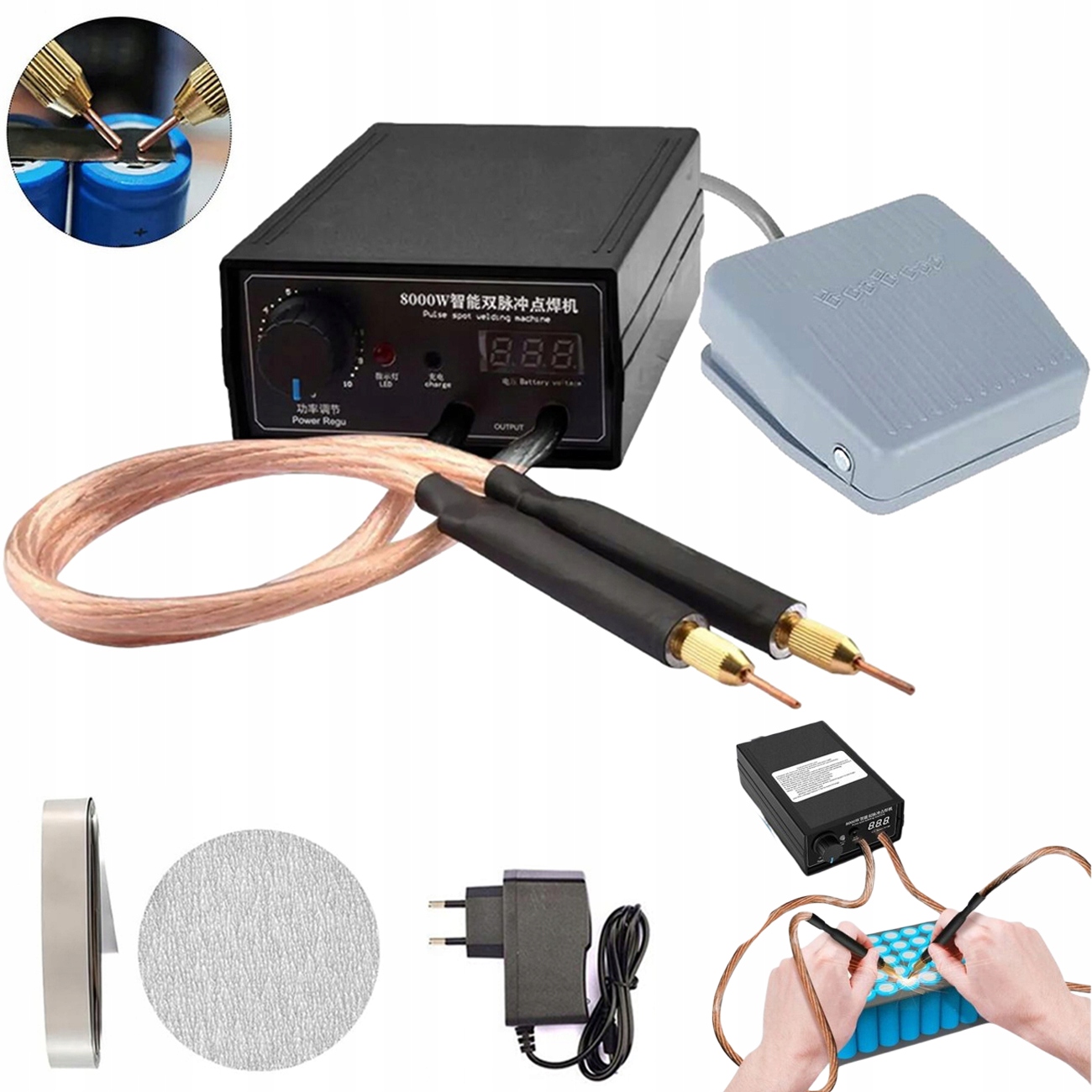 АППАРАТ ТОЧЕЧНОЙ СВАРКИ НА 18650 ЯЧЕЙ ДЛЯ СВАРКИ 8000ВТ + МАТОВАЯ БУМАГА