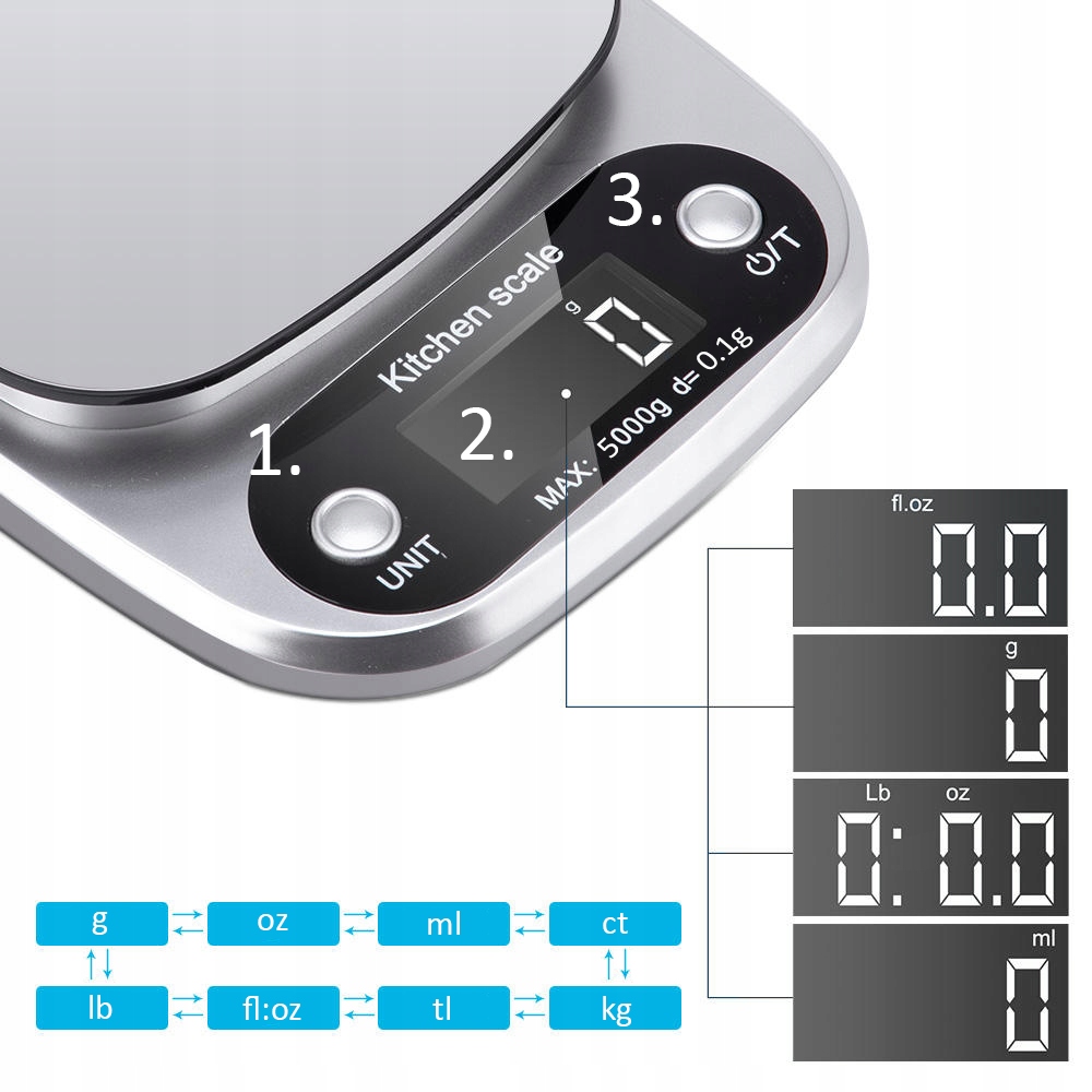 Шкала с точной кухонной шкалой 5000G/0,1G LCD