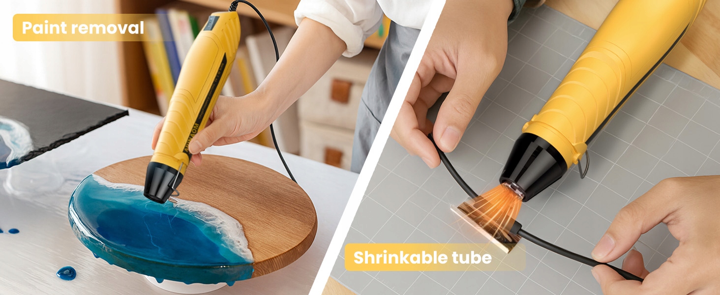 [Прочный и безопасный для поделок] Этот надежный тепловой пистолет, изготовленный из термостойкого АБС-пластика и оснащенный защитой от перегрева, гарантирует безопасную работу даже при длительном использовании, например, при изготовлении свечей или термоусадочных работах.