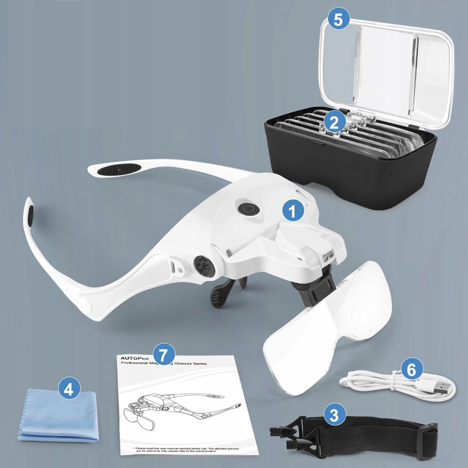 Эта перезаряжаемая головная лупа поставляется с 5 линзами с увеличением 1,0x, 1,5x, 2,0x, 2,5x и 3,5x в соответствии с вашими потребностями. Каждая линза надежно хранится в футляре.