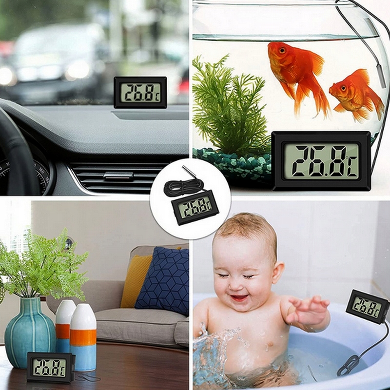 Вы ищете точный термометр для измерения уровня воды в аквариуме или воздуха на улице? Хотите, чтобы результат измерения температуры был точным и легко читаемым? Наш цифровой термометр с водонепроницаемым щупом позволит вам точно измерить температуру готового детского молока и других блюд или напитков. Компактный размер устройства означает, что оно занимает очень мало места, поэтому его можно удобно разместить в террариуме.