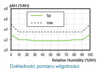 Наш прибор зачастую точнее гигрометров, которые продаются за несколько тысяч злотых. Обратите внимание, что в описаниях много ошибок, поскольку некоторые Продавцы, возможно, по незнанию, вместо точности указывают разрешение дисплея. Если мы видим в описании погрешность 0,1%, значит таких гигрометров нет. Это разрешение дисплея, т. е. сколько цифр после десятичной точки оно имеет. 1 означает влажность без дробей, 0,1 означает одну цифру после запятой, а 0,01 означает две цифры после запятой. Это не имеет абсолютно никакого отношения к точности датчика, которая номинально обычно составляет от 3% до 5% (по крайней мере, теоретически, потому что бумага все примет). Это означает, что последние цифры на дисплеях совершенно случайны. Не дайте себя обмануть. Максимальную точность почти никто не дает, только типовую точность, потому что не хотят выглядеть плохо. Почти никто не обеспечивает ежегодный дрейф, поскольку он может иметь разрушительные последствия и дисквалифицировать большинство устройств.