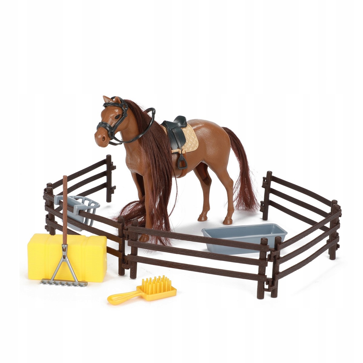 Независимо от того, выберете ли вы белую или коричневую лошадь, вы сможете полностью ее расчесать с помощью этого полного набора. Расчешите длинный мягкий хвост и гриву щеткой. Затем дайте ему немного сена и что-нибудь попить из ведра. Все дополнительные аксессуары сделают уход еще проще.