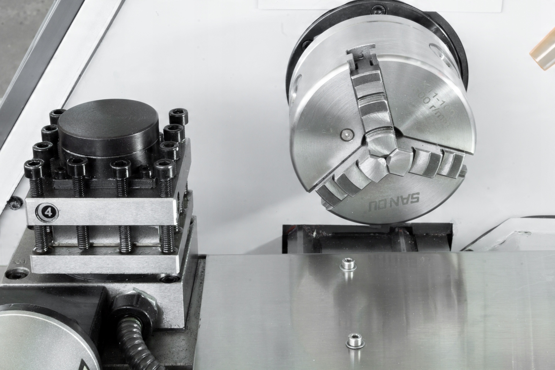 - 4-позиционная электрическая револьверная головка - 4-позиционная электрическая револьверная головка вращается на токарном станке с ЧПУ