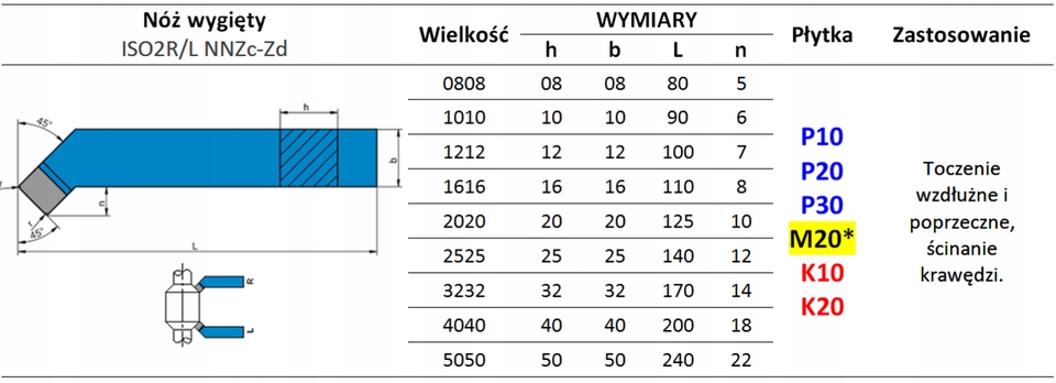 Мы предлагаем токарный нож ISO 2R NNZc 2020 P20 с напаянной пластиной из спеченного твердого сплава. Это токарно-винторезный станок, предназначенный для тонкой и средней точности обработки стали и литой стали на высоких скоростях резания и умеренных подачах.
