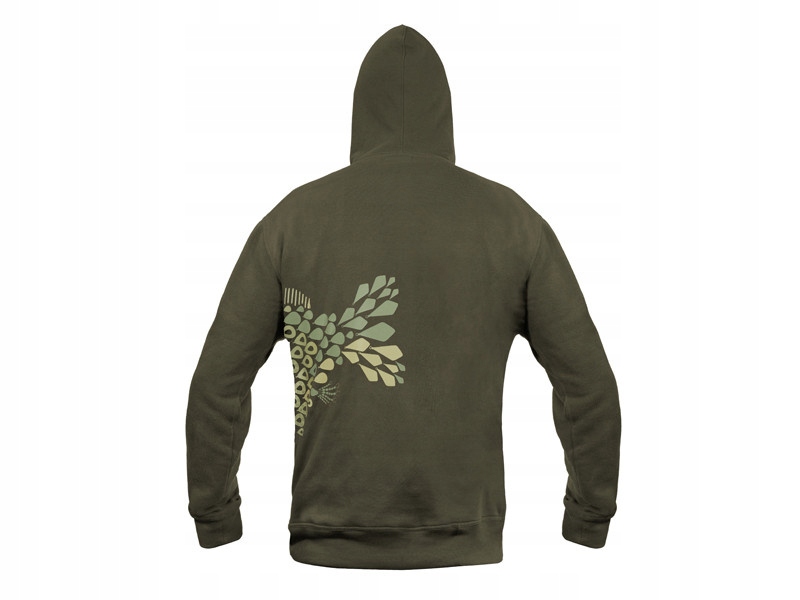 Он изготовлен из темно-зеленого материала, который идеально гармонирует с окружающей природой. Мотив карпа, представленный на свитшоте, полностью состоит из отдельных элементов сборки карпового комплекта. Это делает Delphin TACKLE узнаваемым и поистине уникальным предметом среди одежды для ловли карпа. В передней части имеется два кармана, которые позволяют согреть руки в холодные дни, а также хранить и носить с собой различные вещи.