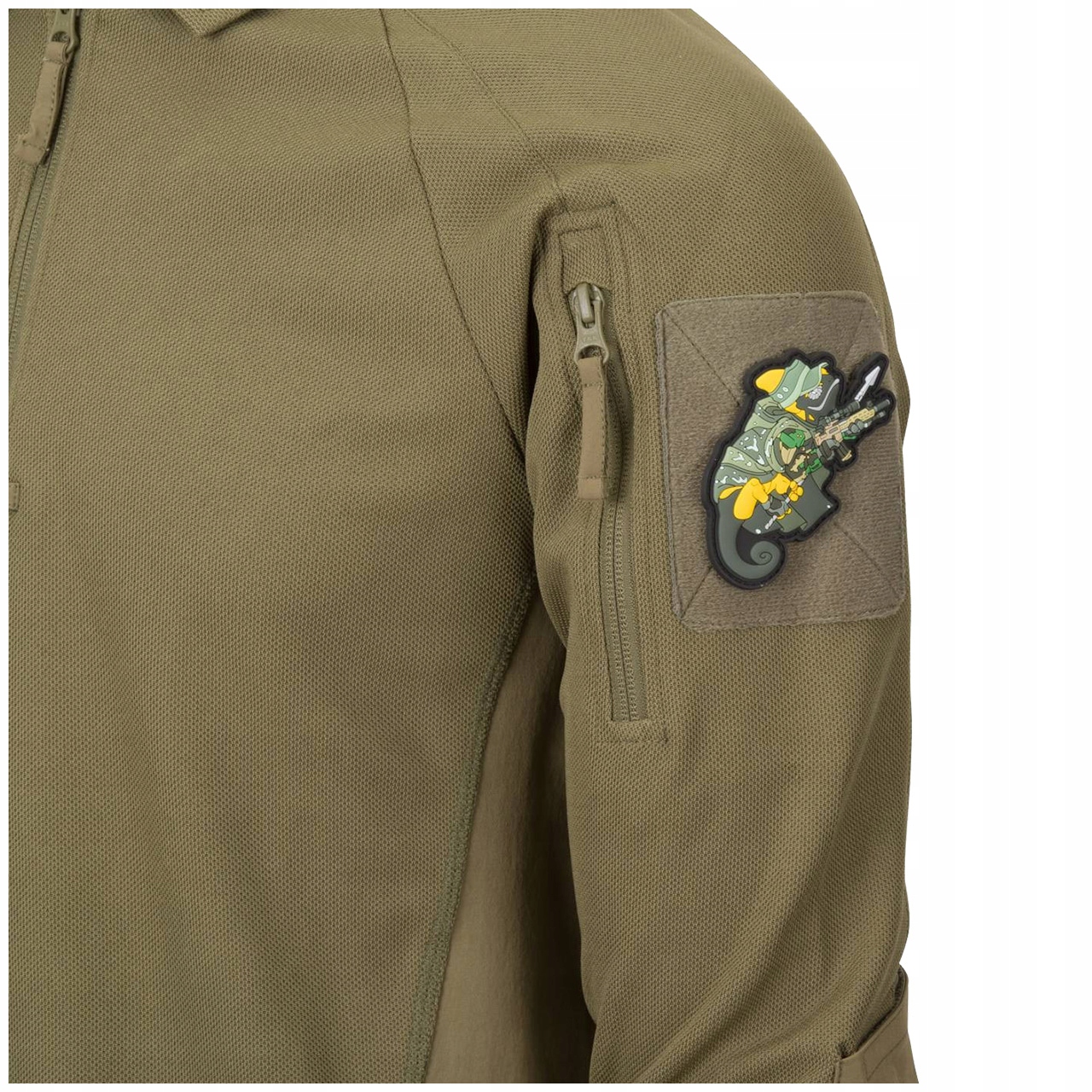 Т -рубашка также предлагает четыре функциональных кармана, в том числе два кармана на плечах, прикрепленных к молнии, которые идеально подходят для хранения безделушек. Кроме того, T -малана оснащена панелями липучков (липучка), которые позволяют размещать пластыри, эмблемы или моральные пятна, что обеспечивает персонализацию внешнего вида. Другим практическим элементом являются очки для очков, расположенные под замком на вырез, что позволяет удобно хранить очки.
